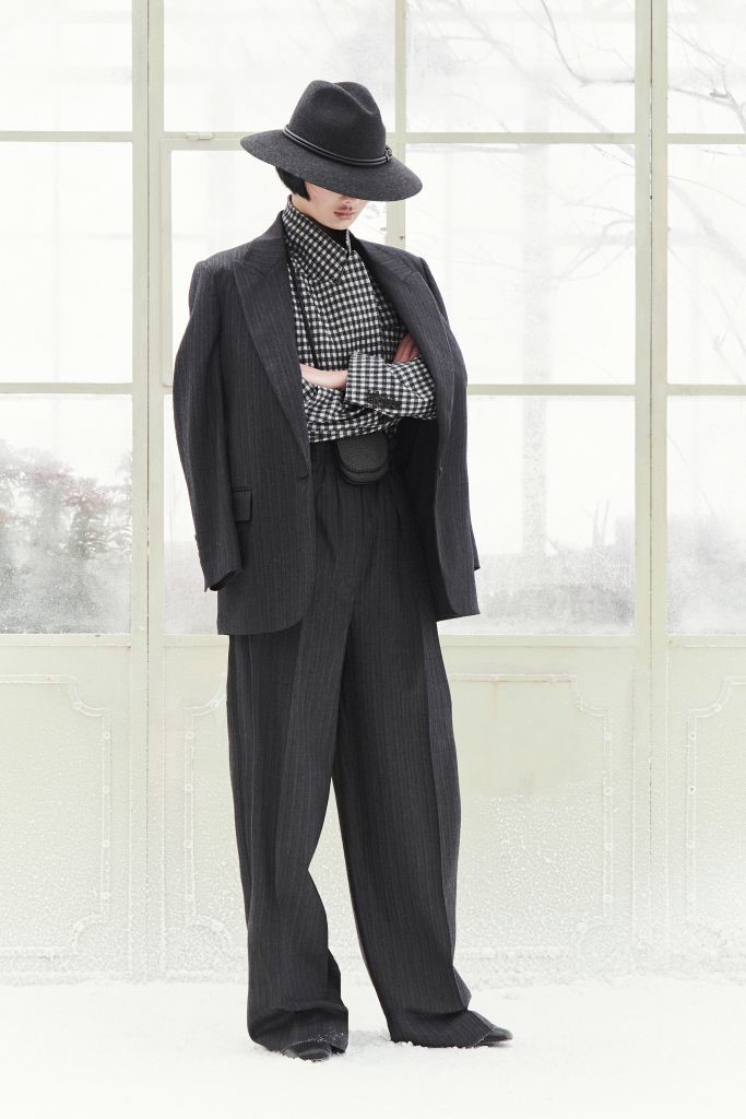 As saias são outra peça chave da coleção. Midi, lápis e de linhas minimalistas, elas caracterizam-se por fendas generosas e femininas, com volumes suaves e pregas em flanela, organza ou tule decoradas com bordados em mohair.
