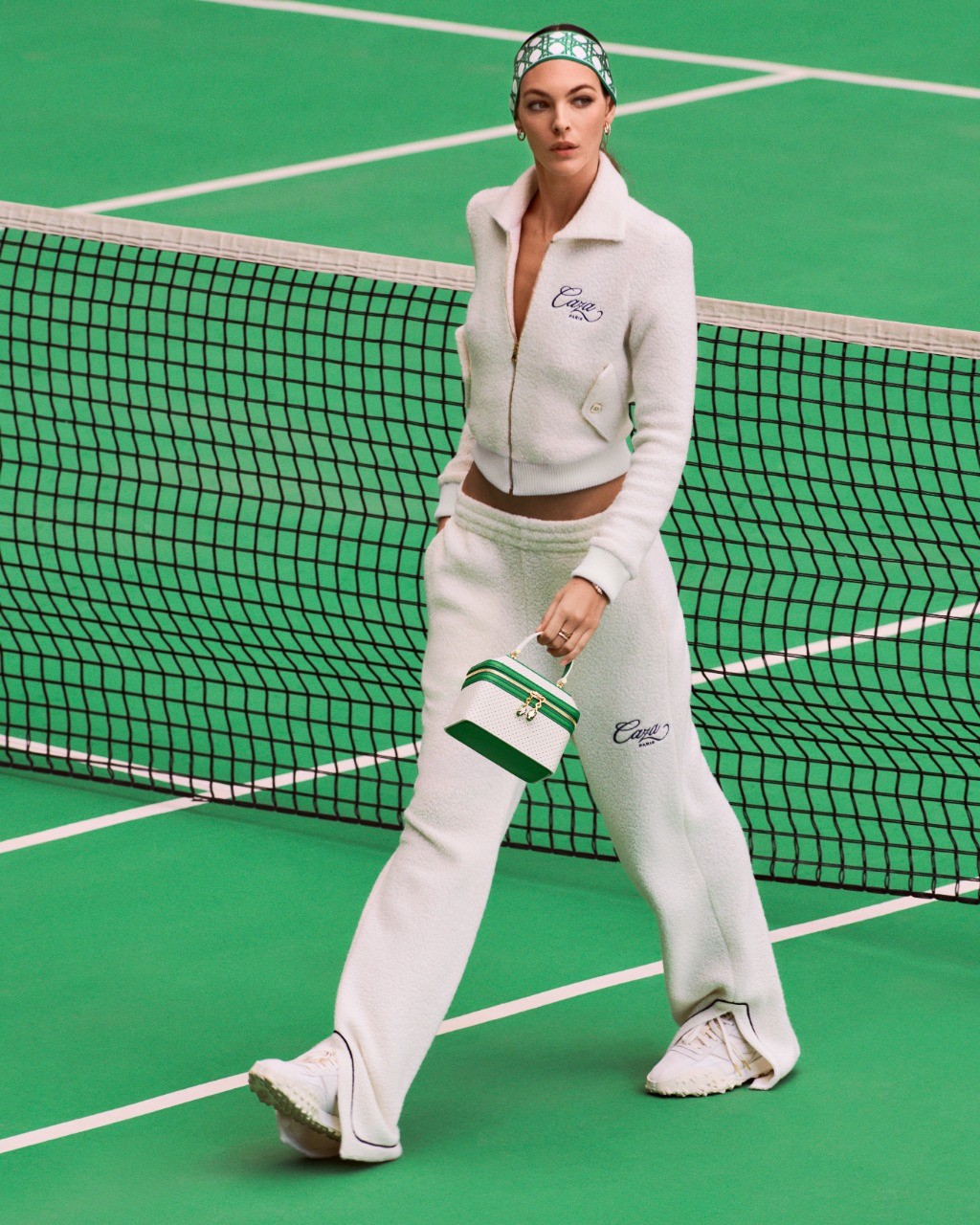 Dividida em dois lançamentos, a coleção de 7 peças conduz através dos principais mundos de inspiração da Casablanca: o esporte com o Après Tennis Story e o patrimônio artístico com o Mosaic Story. Inspirado nos estilos clássicos de tênis e elementos de design gráfico, para a primeira história, Casablanca eleva o visual do après sport jogando sobre o contraste icônico entre um fundo branco e toques de verde. A mistura única de couro perfurado branco, ferragens douradas e alças de madeira inéditas refere-se imediatamente ao equipamento, ao clima, às cores, aos detalhes, ao visual e à estética elegante do mundo do tênis.
