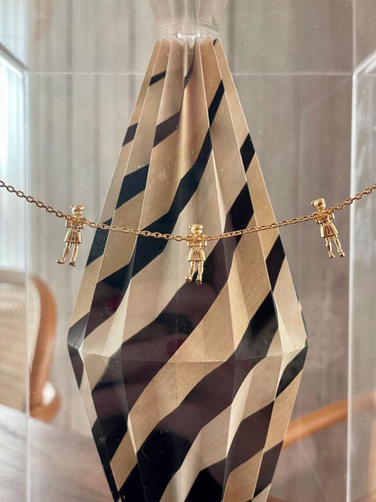 Intitulada Mundo Mágico, a linha traz as delicadas meninas douradas de Nara Ota brincando dentro das peças da By Gabs, se equilibrando em cordas como se flutuassem dentro de esculturas clássicas da marca, reimaginadas em cores e padronizações inéditas e nos mostrando que é possível ver o mundo através dos nossos sonhos.