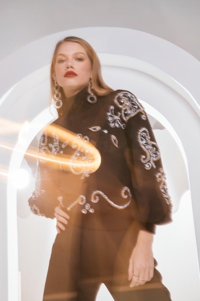 Cores como lemoncello e rosa shock são encontradas em casacos e blazers, trazendo alegria para as peças. Manga bufante, gola alta e bordado, elementos que carregam um ar sofisticado, aparecem em camisetas e moletons, criando combinações que misturam elegância a conforto e fazem parte deste novo mundo a ser descoberto.