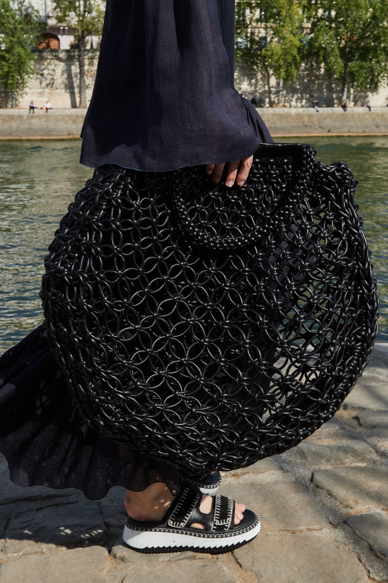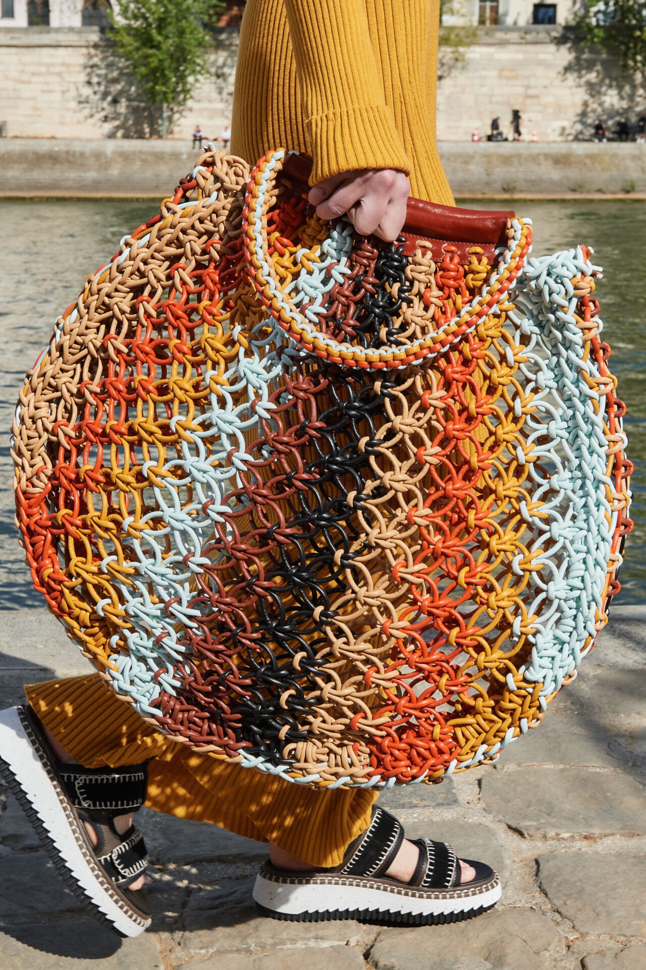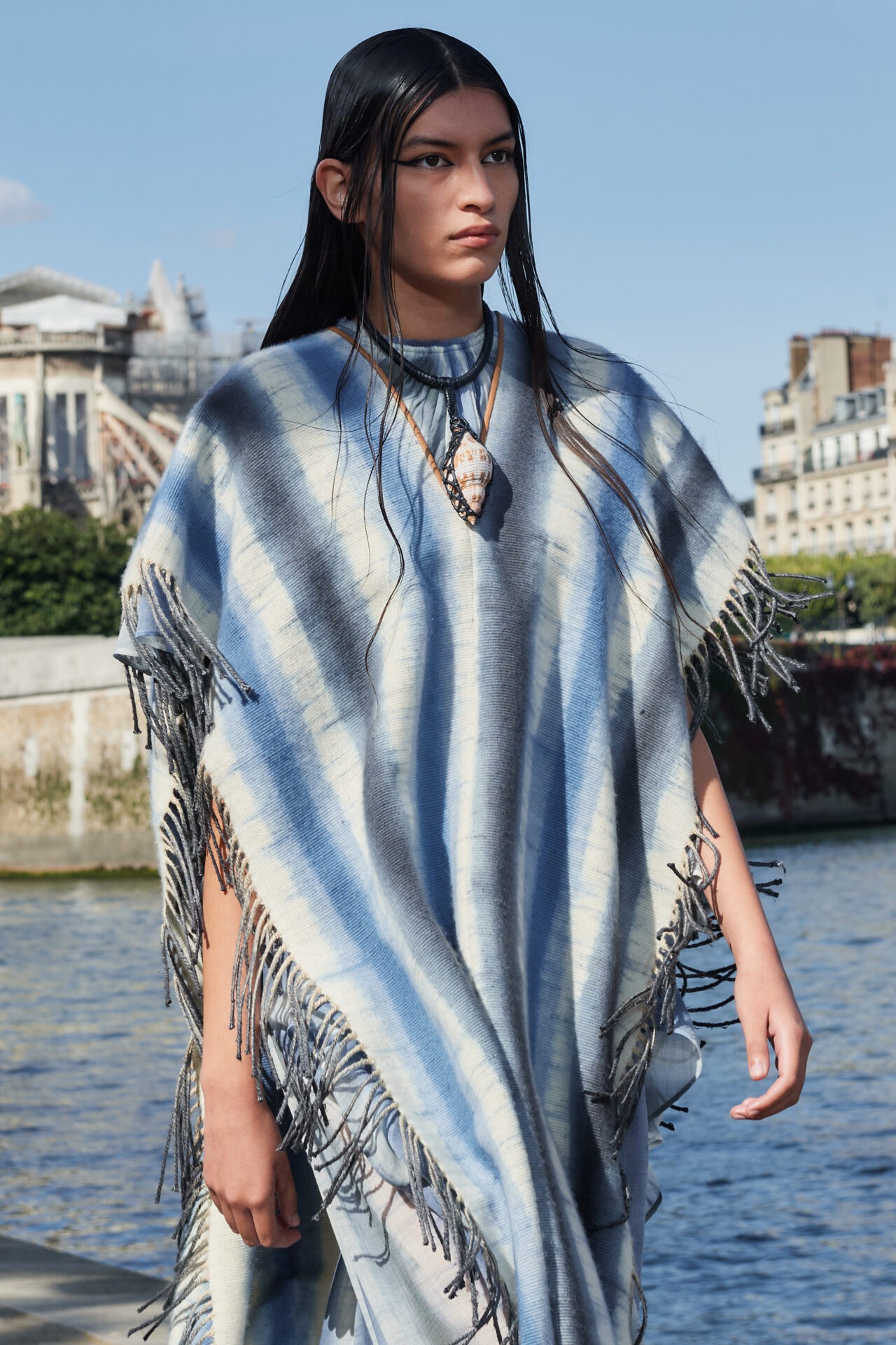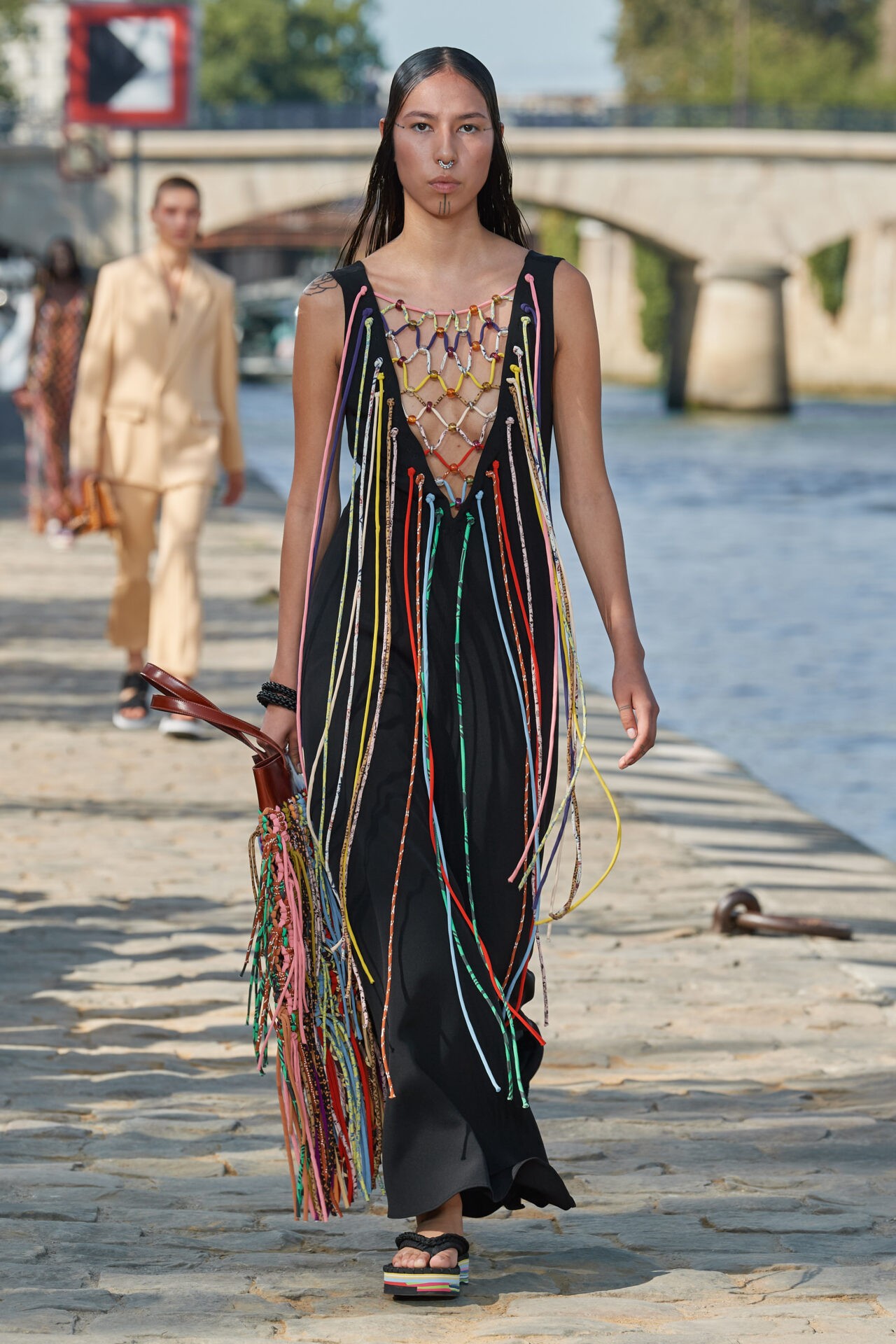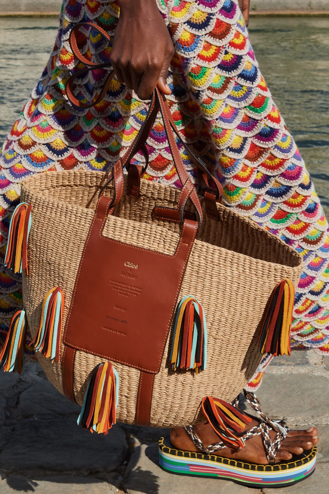 Tudo isso se materializa na passarela de um jeito muito leve e elegante, com macramês, franjas, vestidos e cáftans em linho, além de belas bolsas com tramas e acabamentos feitos à mão. Tudo na passarela da marca busca ser eco-friendly e ter impacto ambiental reduzido.