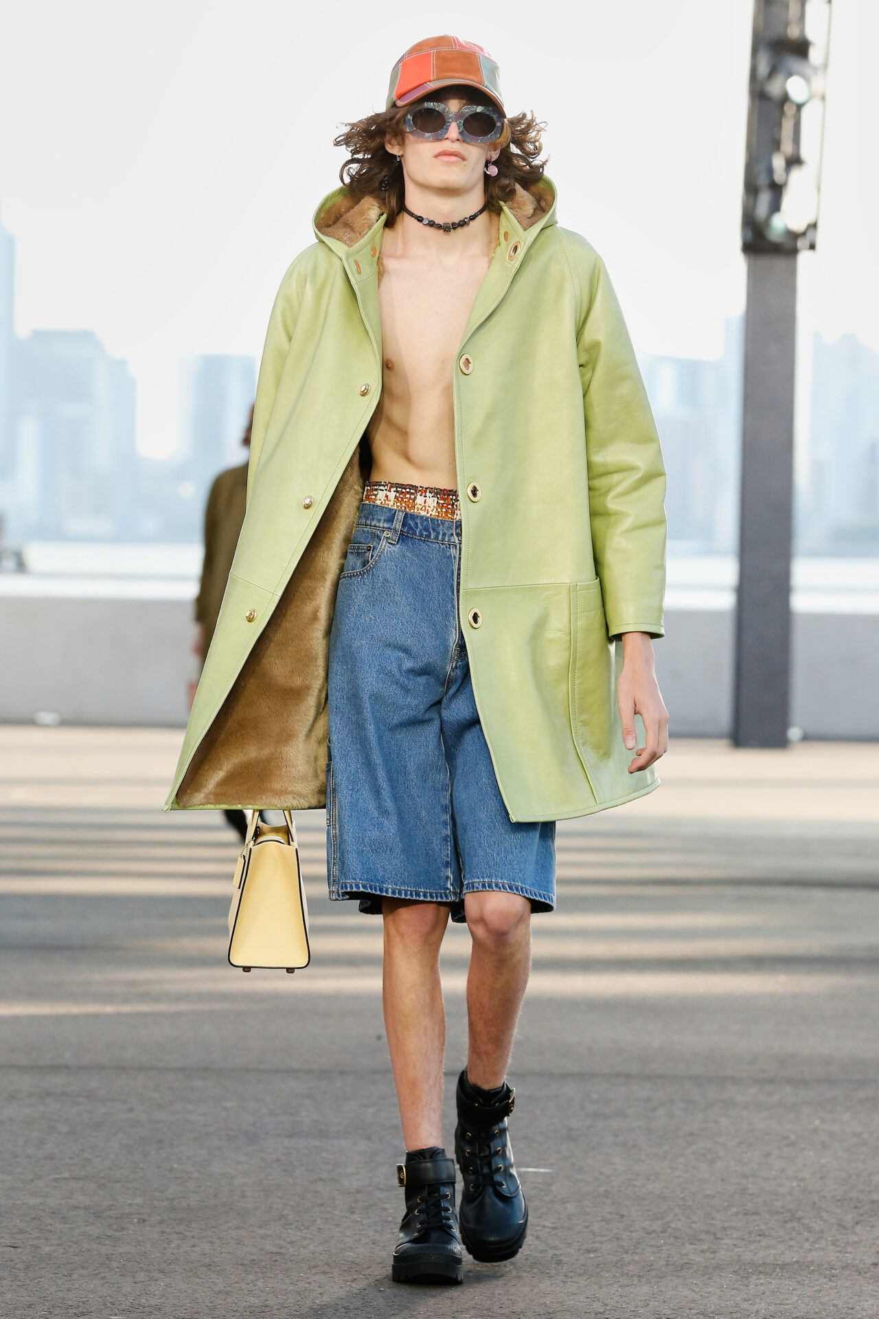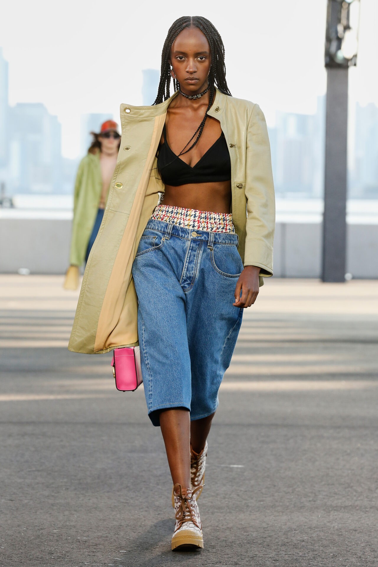 Como parte do compromisso da casa com a sustentabilidade, a coleção também apresentou atualizações da Cashin Carry Tote feita em couro ecológico e couro reciclado de luvas de beisebol, juntamente com jeans reciclado.