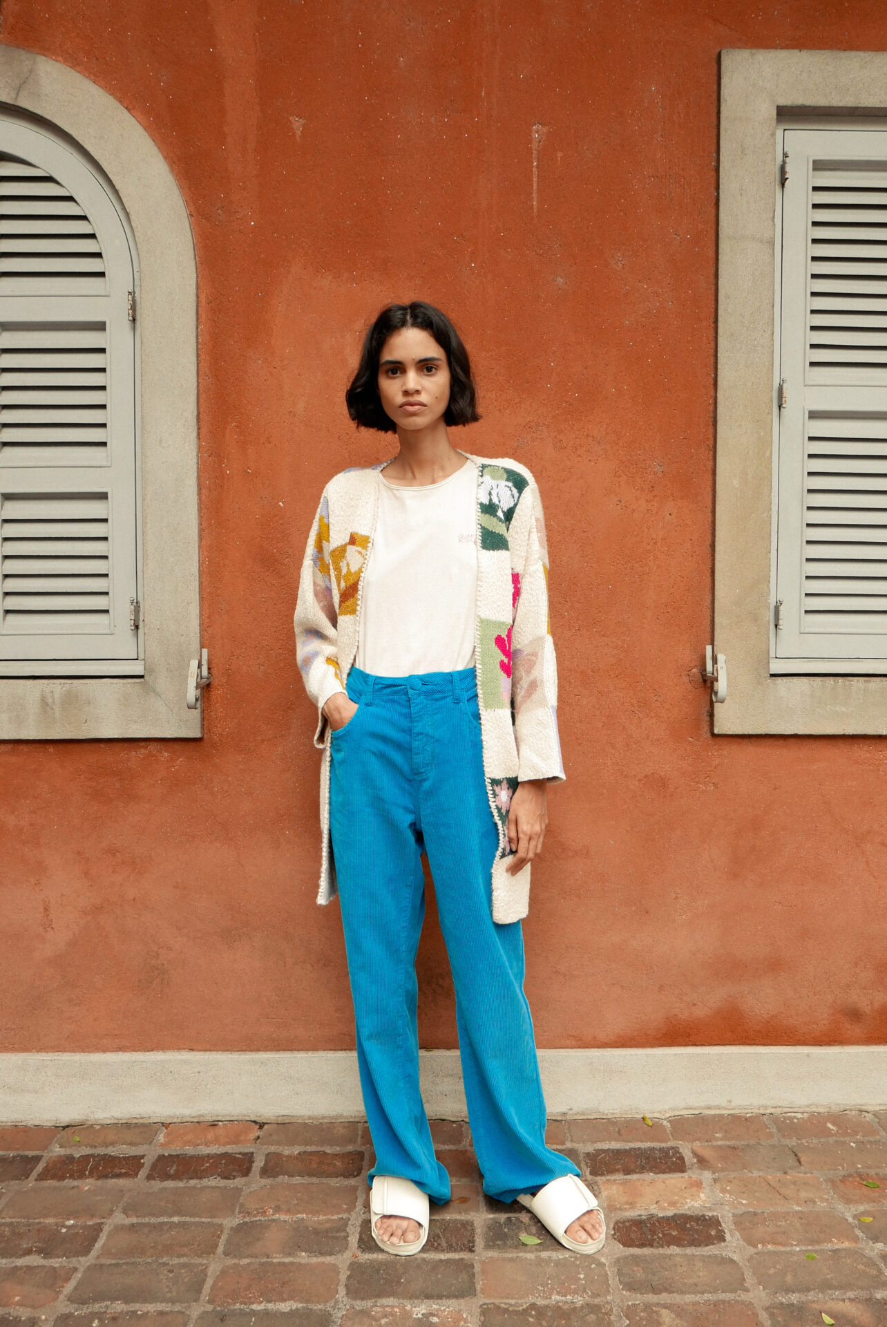 Já as calças de corte reto com um ar mais fun e descolado, como a opções coloridas com bordados de stickers no bolso, ou a calça pescador com bordados de miçangas na lateral, também são confeccionadas com algodão sustentável, linho e modal autossustentável, ambos matérias primas naturais desenvolvidas de forma ecologicamente correta.