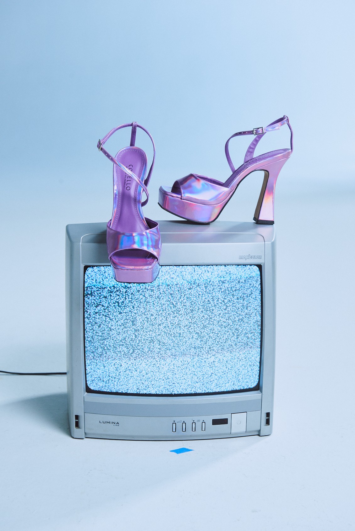 A linha apresenta seis modelos de sapatos e duas bolsas, feitos com materiais holográficos, malhas de paetê e cetim, seguindo uma paleta de cor, que conta com roxo, azul e prateado fazendo referência à vivacidade com toque glam que a temporada transmite.