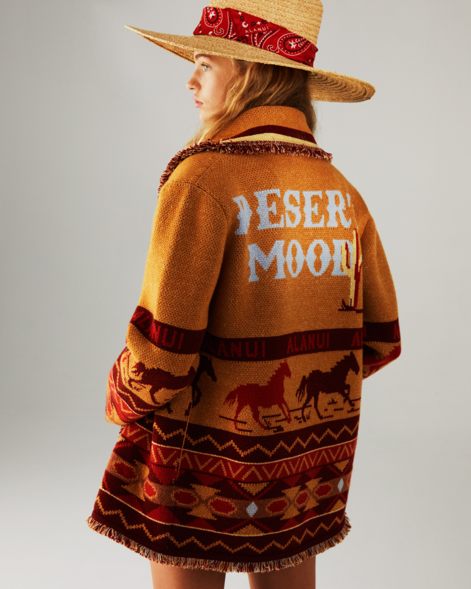 Nesta temporada, a marca, sediada em Milão, mergulha na paisagem faroeste americana e homenageia a beleza dos desertos, trazendo um novo e libertador sentido de escapismo. Para compor a série de filmes, Carlotta Oddi, diretora criativa da Alanui, colaborou com o diretor Andrea Calvetti, cujo DNA italiano tem sintonia perfeita com a estética da marca milanesa. “A Alanui abraça a alma do oeste americano e o amor vertido na confecção das roupas”, diz Calvetti.