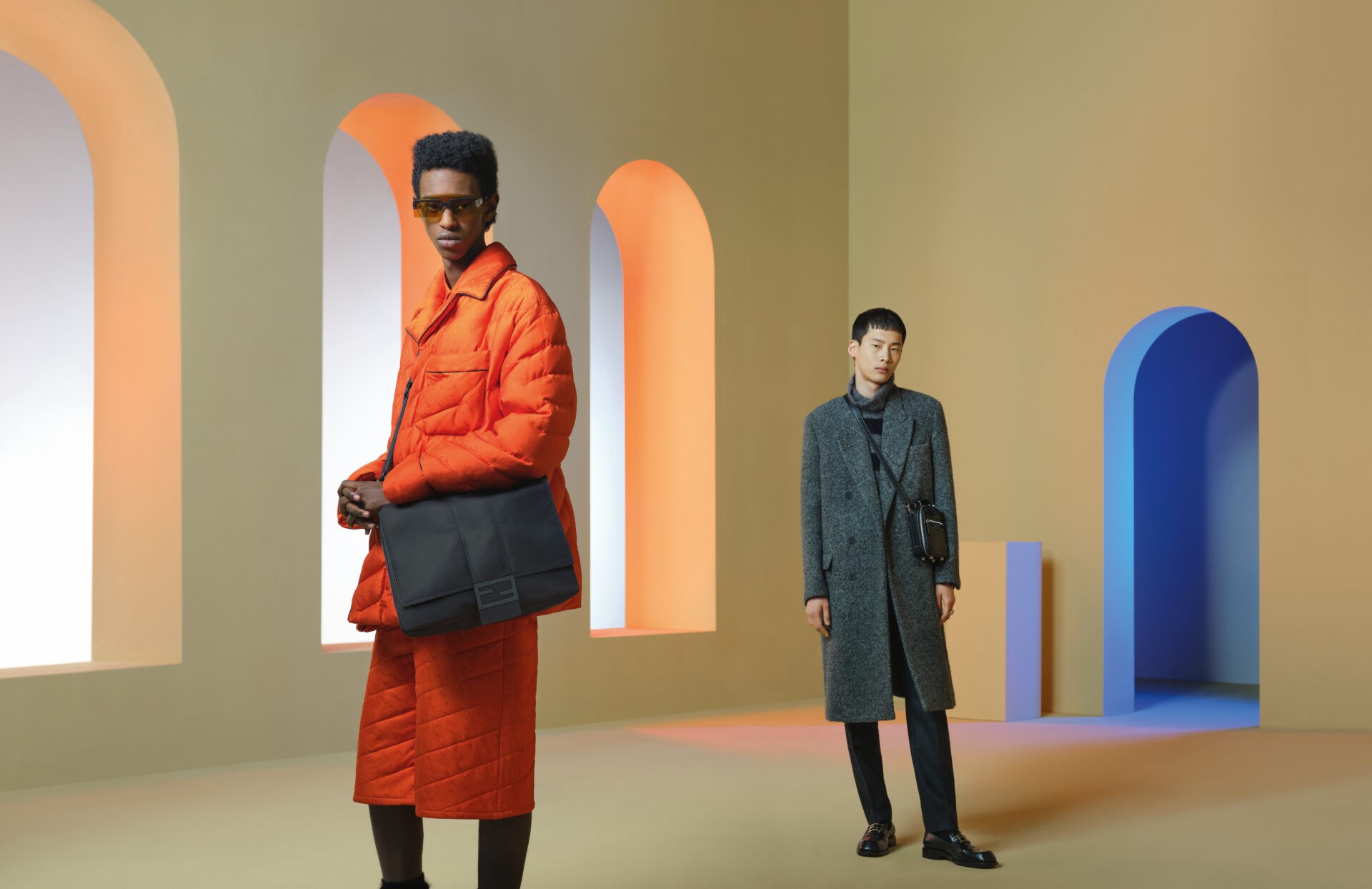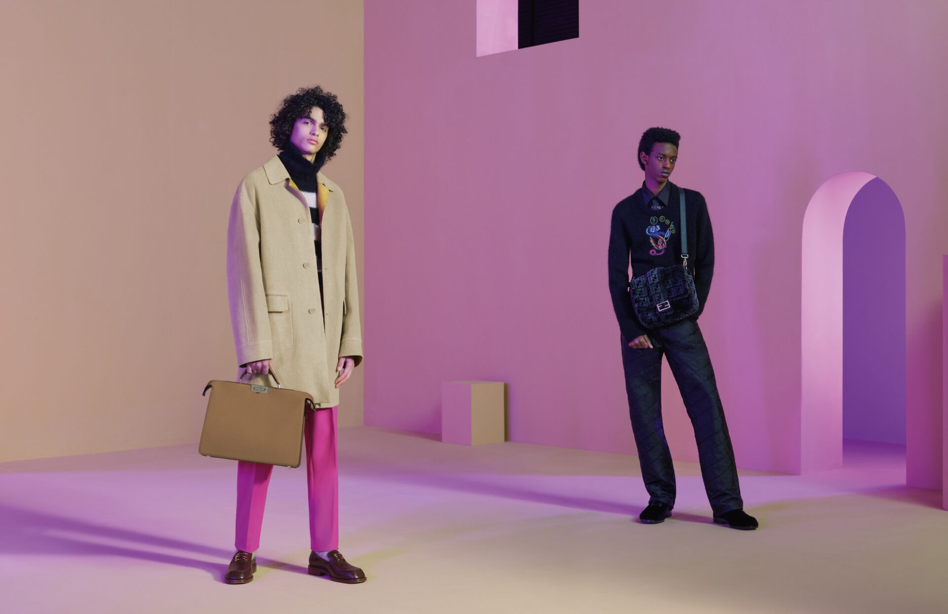 Em um conjunto metafísico, a nova campanha publicitária brinca com os looks característicos da coleção, um amplo espectro de clássicos da moda masculina misturados à ludicidade FENDI. O resultado é uma celebração descarada de cor e luz, emergindo da escuridão para o Technicolor completo.