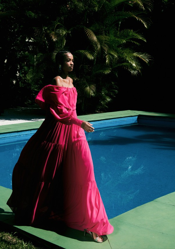 Desta vez, a label aposta em pedrarias e franjas para destacar saias, casacos e cardigans, entregando um ar sofisticado e artsy. Detalhes como volume, fluidez e gola alta trazem personalidade aos vestidos da linha. Por fim, as jaquetas bomber de paetê e as shackets garantem o visual que a estação pede, preservando o DNA da marca.
