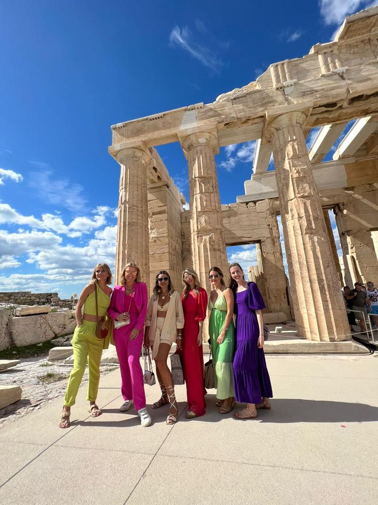 A tarde fizemos algo bem inesperado para quem pensa em Grécia: aproveitamos nossa localização privilegiada para um tour de compras bem personalizado e fomos conhecer mais da cultura local através dos produtos de designers gregos. Visitamos, por exemplo, a loja de sandálias queridinha de Gisele Bündchen, a joalheria grega do melhor amigo de Oskar Metsavaht, dono da Osklen, e o ateliê de Vassilis Zoulias, designer grego que assina vários looks utilizados pela protagonista na famosa série “Emily em Paris”. O jantar foi num restaurante novíssimo da cidade, o Xenodocheio Milos que depois do sucesso em Miami acaba de abrir as portas na capital grega. A especialidade por lá são os peixes fresquíssimos que adoramos provar. E como numa boa viagem entre amigas, a noite só terminou depois de conhecermos uma autêntica balada ateniense, muito bem recomendada pelos locais. Música boa, bebidas em valores honestos e uma ótima oportunidade para fazer mais uma imersão cultural despretensiosa.