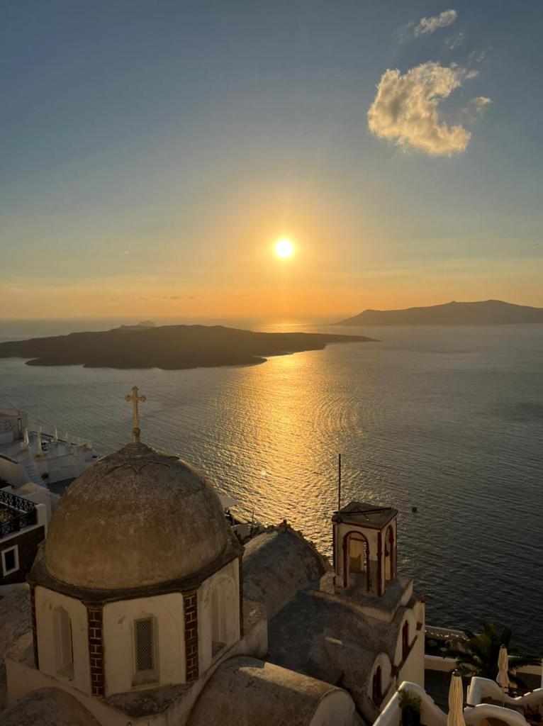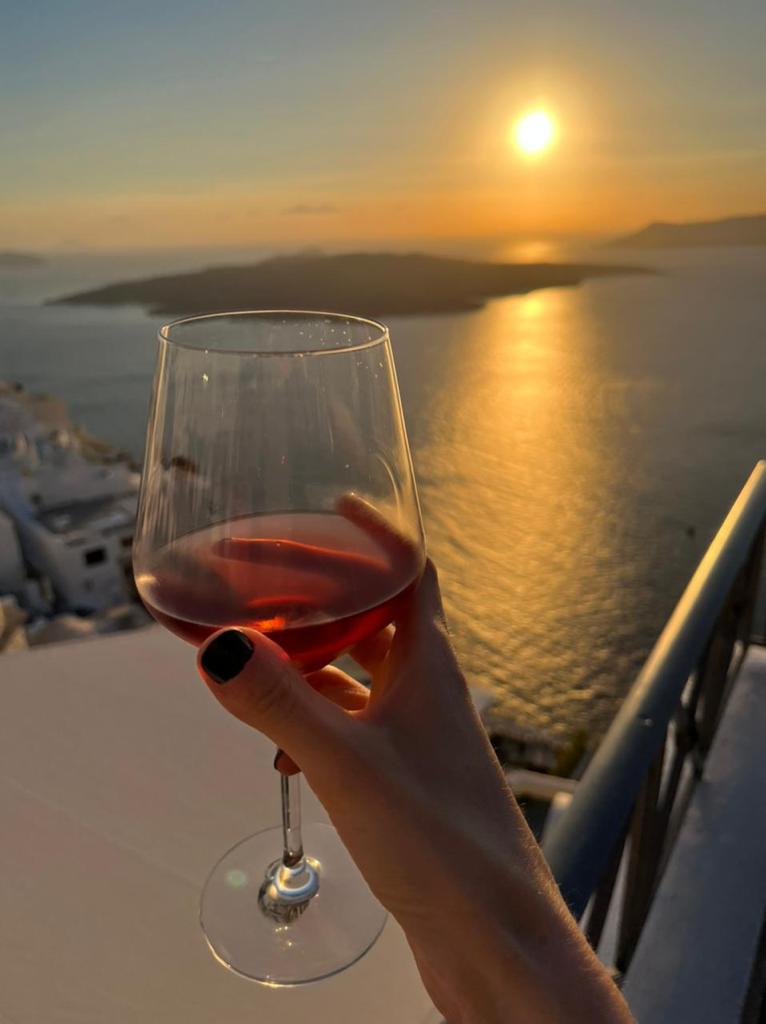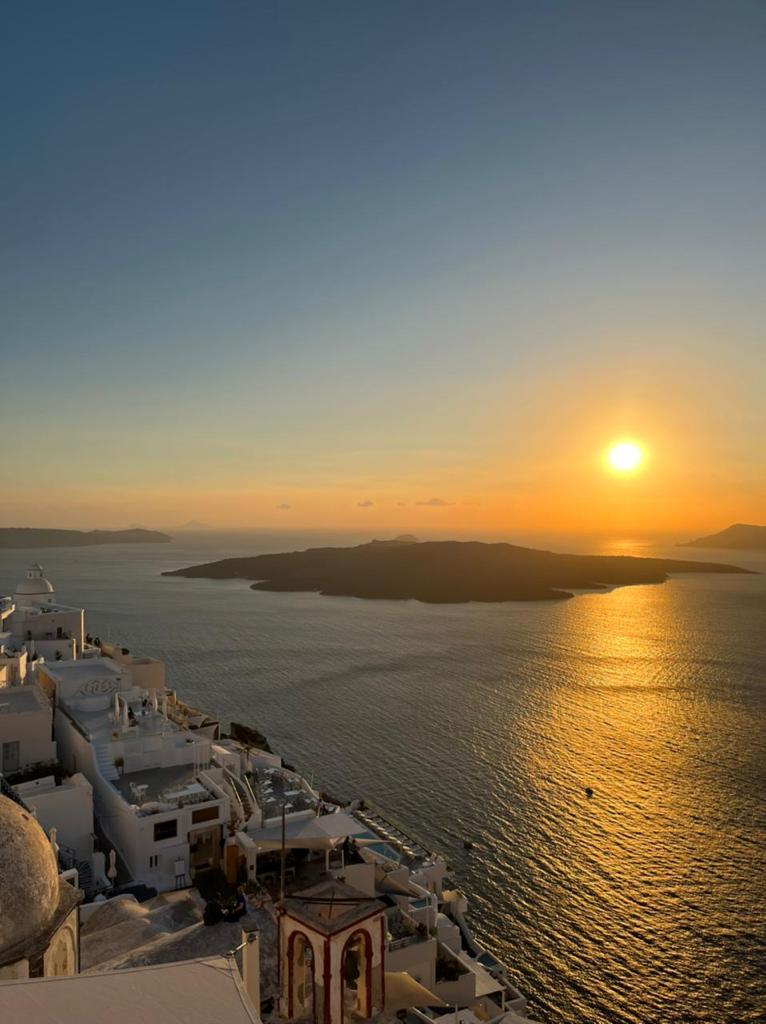 Dois dias intensos em Atenas são suficientes para sentir o gostinho da cidade, mas o mesmo período em Santorini pareceu pouco. A ilha que faz parte de um conjunto de 200 Ilhas Ciclades sendo 24 delas habitadas no mar Egeu tem um charme tão especial que nos encantou. Optamos por chegar lá num voo rápido de 40 minutos, mas outra ideia é ir de Ferry. A ilha é maior do que imaginamos, por isso é essencial alugar um carro, uma scooter ou até mesmo um quadriciclo. Santorini é o típico estereótipo grego com casinhas brancas e igrejinhas com teto azul por todos os lados, mas se tem uma coisa que a gente não cansa de ver é o pôr do sol com aquele mar azul sempre de fundo. Não à toa ele tem a fama de ser um dos mais bonitos do mundo e pudemos comprovar que isso é mesmo verdade.