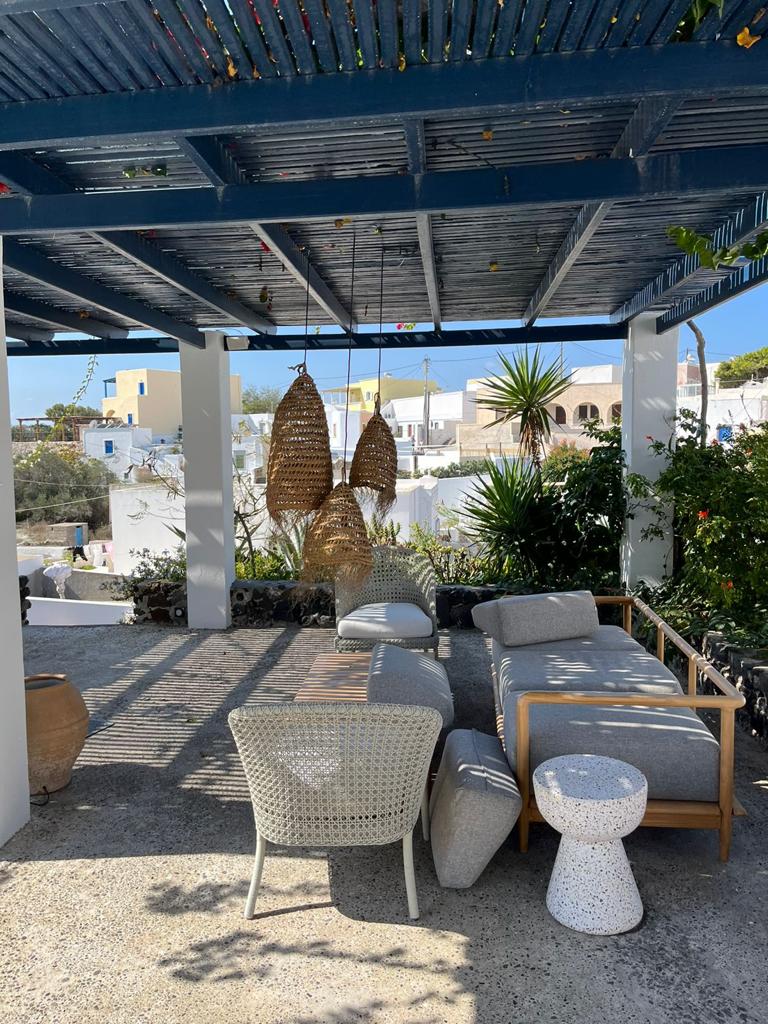 E uma vez em Santorini o roteiro precisa incluir ao menos uma parada em praias e beachclubs. Assim fizemos na manhã seguinte ao visitar a praia de Perivolos que possui 3km de extensão e é a maior da ilha. A orla é bem animada, tem paisagem montanhosa ao fundo e areia preta com o geladíssimo mar azul do Egeu. Uma combinação no mínimo exótica. Escolhemos o beachclub do Istoria Hotel onde desfrutamos de um ótimo tempo de descanso ao sol. Vale dizer que nessa época o vento não dá trégua, mas durante o dia é bem gostoso. Também almoçamos por lá e conhecemos o novo restaurante do hotel, chamado Mr E tem um cardápio com inspiração mediterrânea e um ambiente muito charmoso.