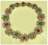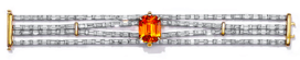Foto: 01: Tiffany & Co. Schlumberger® Daisy earrings in platinum and 18k yellow gold with peridots and diamonds / 02: Bracelet in platinum and 18k yellow gold with an orange sapphire and diamonds / 03: Tiffany & Co. Schlumberger® Daisy necklace in platinum and 18k yellow gold with multi-colored gemstones and diamonds / 04: Tiffany & Co. Schlumberger® Ailsa ring in 18k yellow gold and platinum with diamonds