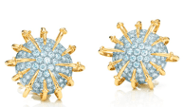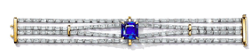 Foto: 01: Bracelet in platinum and 18k yellow gold with an esteemed sapphire and diamonds / 02: Tiffany & Co. Schlumberger® Stitches Ring in platinum and 18k yellow gold with diamonds / 03: Bracelet in platinum with diamonds / 04: Tiffany & Co. Schlumberger® Apollo ear clips in 18k yellow gold and platinum with diamonds