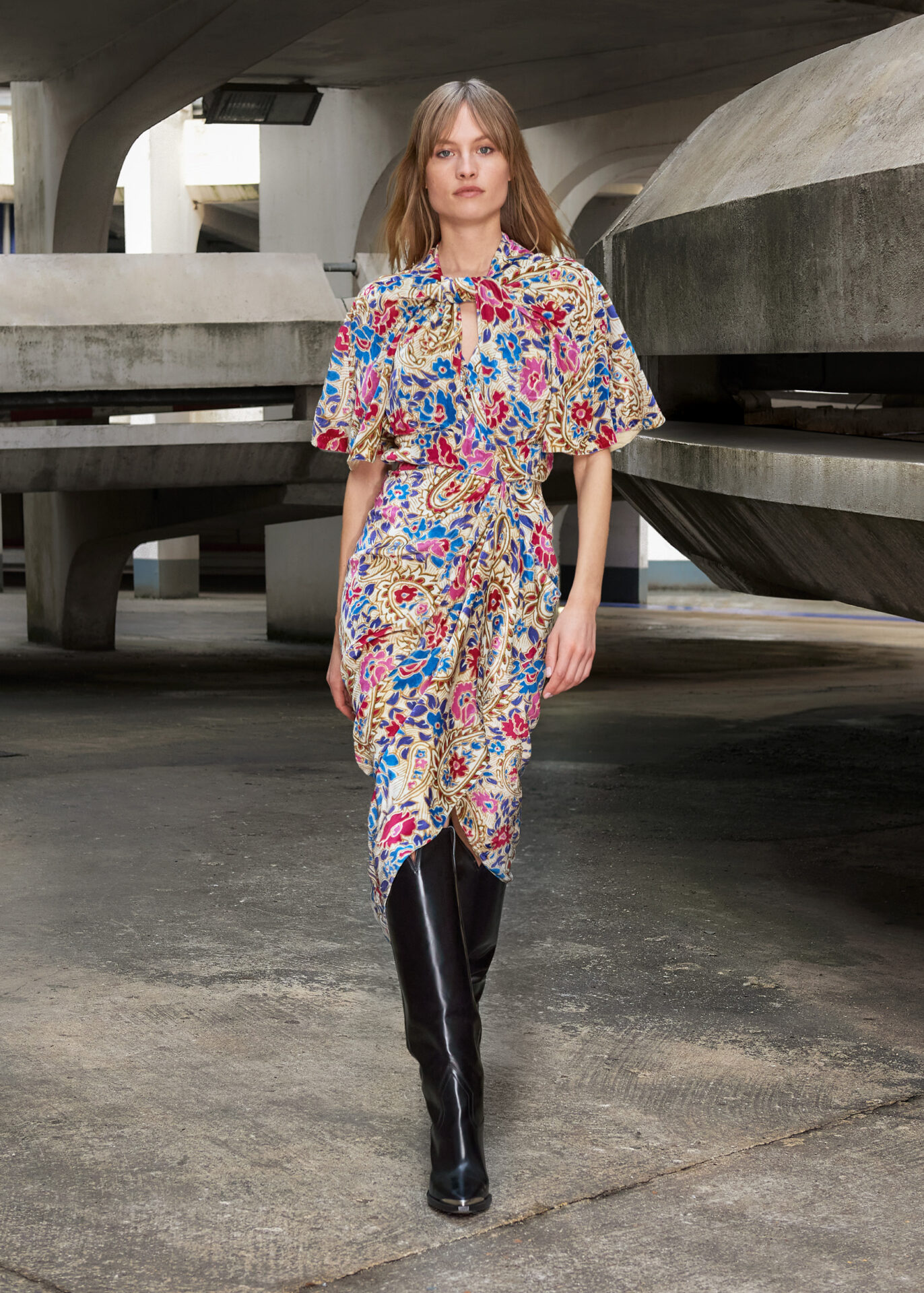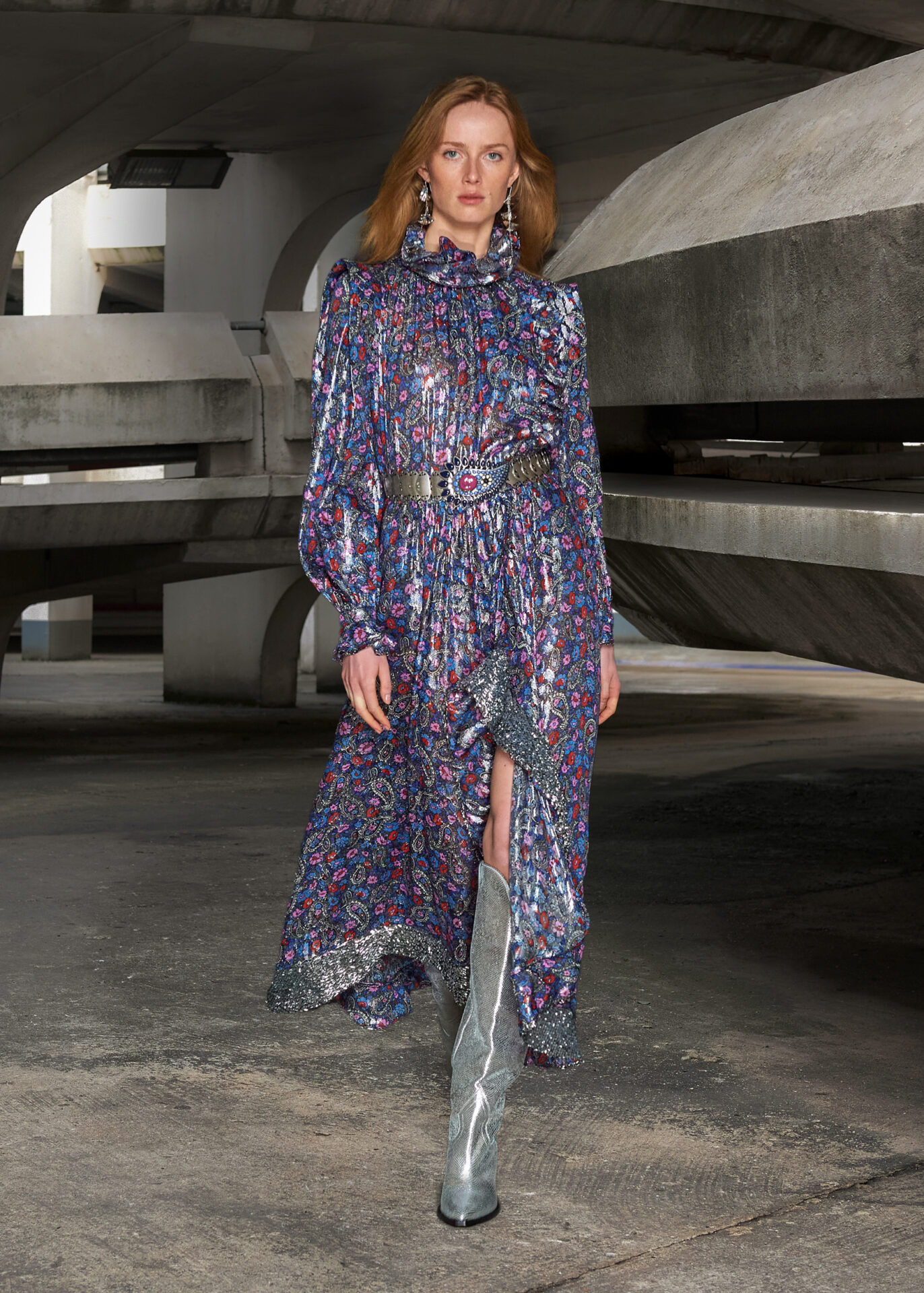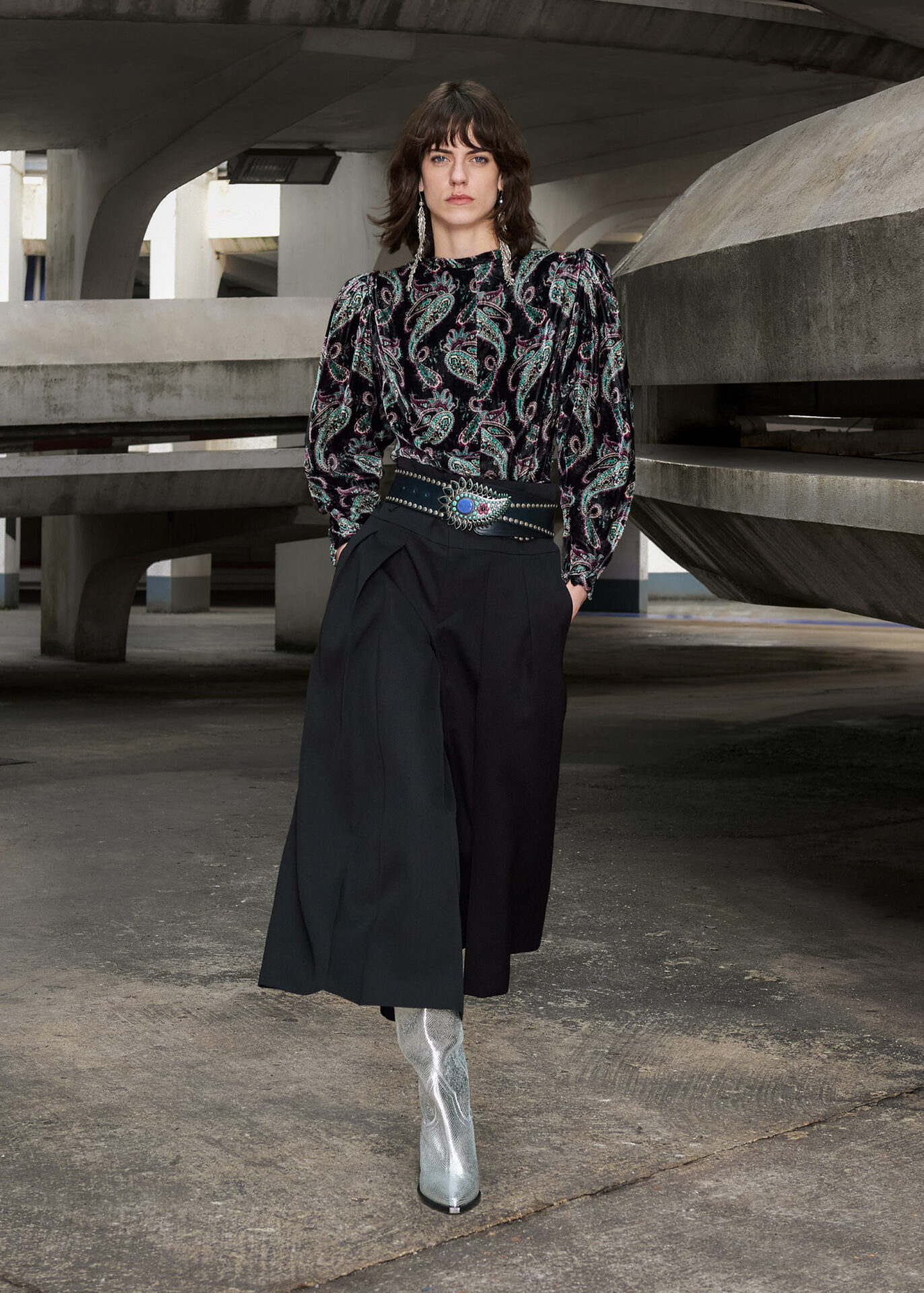 Uma visão do passado ou uma projeção do futuro? A coleção outono-inverno 2021 da designer Isabel Marant traduz essa ambiguidade através de suas silhuetas, cores e estampas.