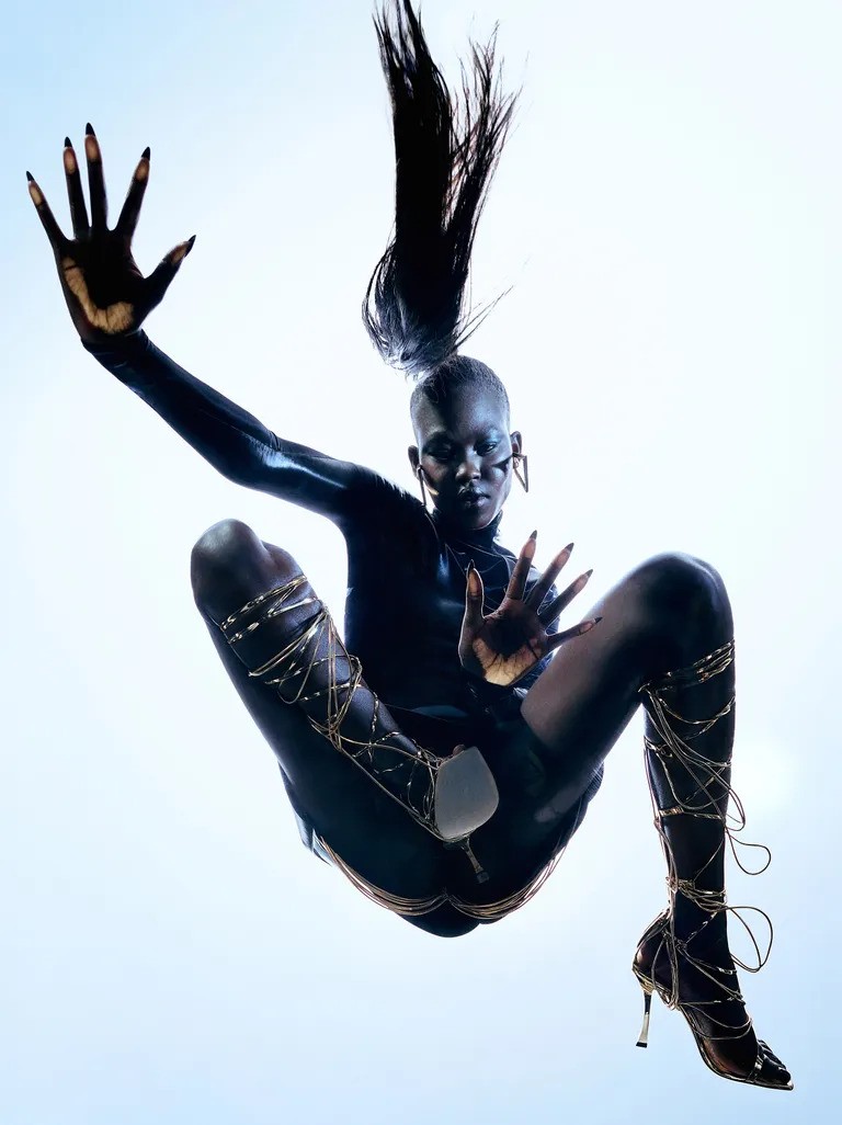 Combinando os designs artísticos de Jimmy Choo com os detalhes da herança de Mugler, a linha apresenta peças-chave como botas de meia que refletem o design espiral distinto das casas de luxo. Outros estilos incluídos são um par de sandálias metálicas com cadarço usadas pela modelo Aweng Ade-Chuol na campanha, além de opções neon para quem quer se destacar. A coleção cápsula Jimmy Choo X Mugler está disponível na íntegra nas lojas e online em jimmychoo.com.
