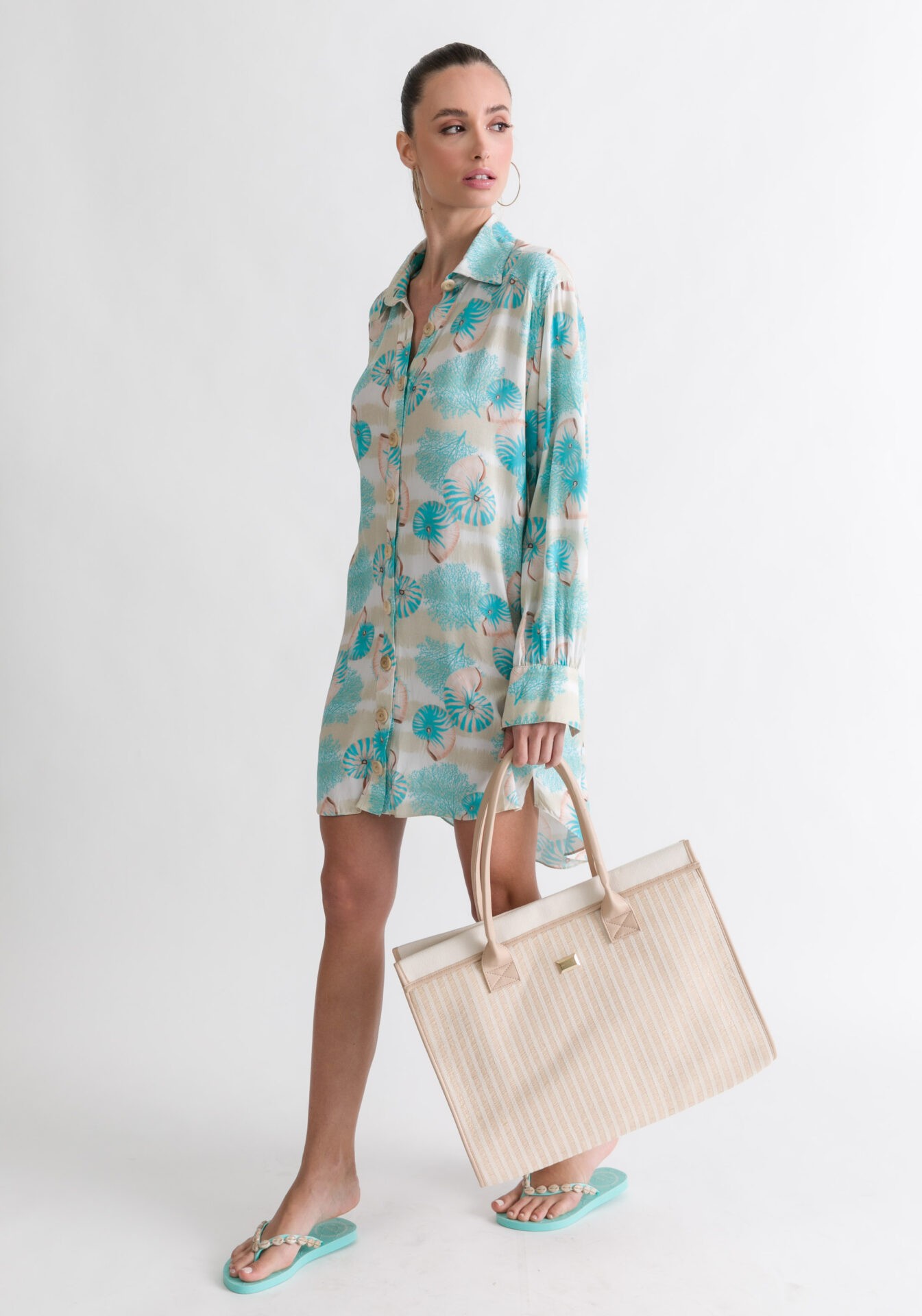 Com peças versáteis que representam o espírito das férias de final de ano, Bruna reforça em sua criação a possibilidade de conciliar conforto e estilo, sem deixar de ousar com muita confiança e segurança. Trazendo vestidos, camisetas, maiôs e chinelos, os acessórios como clutches, bonés e estojos de óculos complementam as produções.