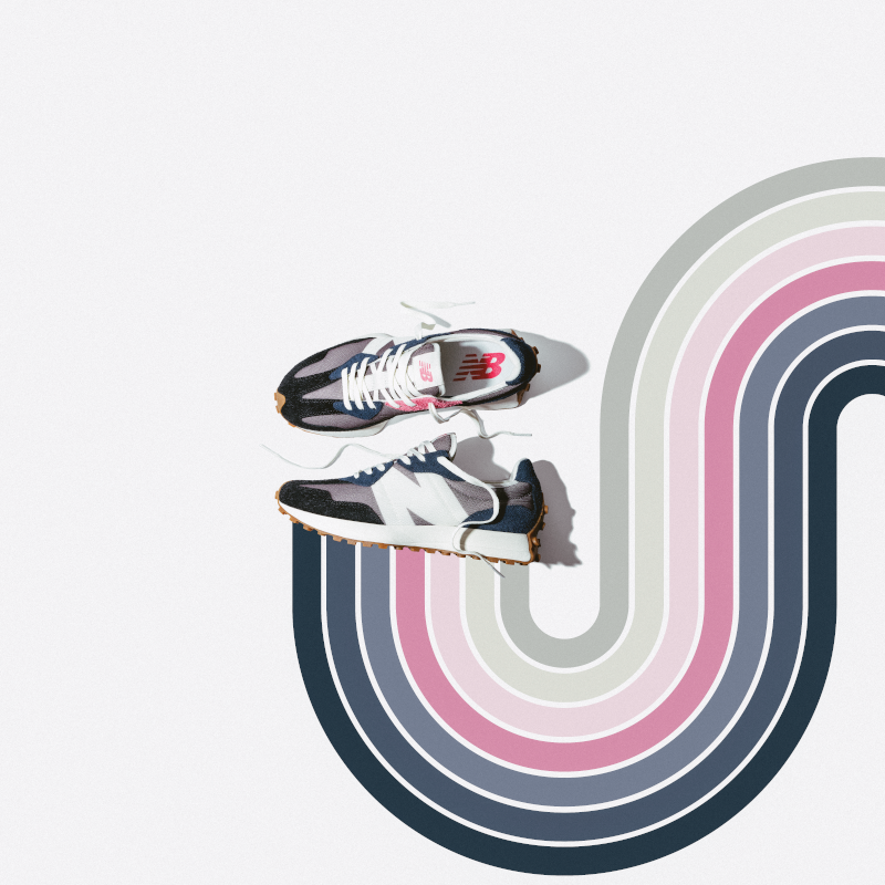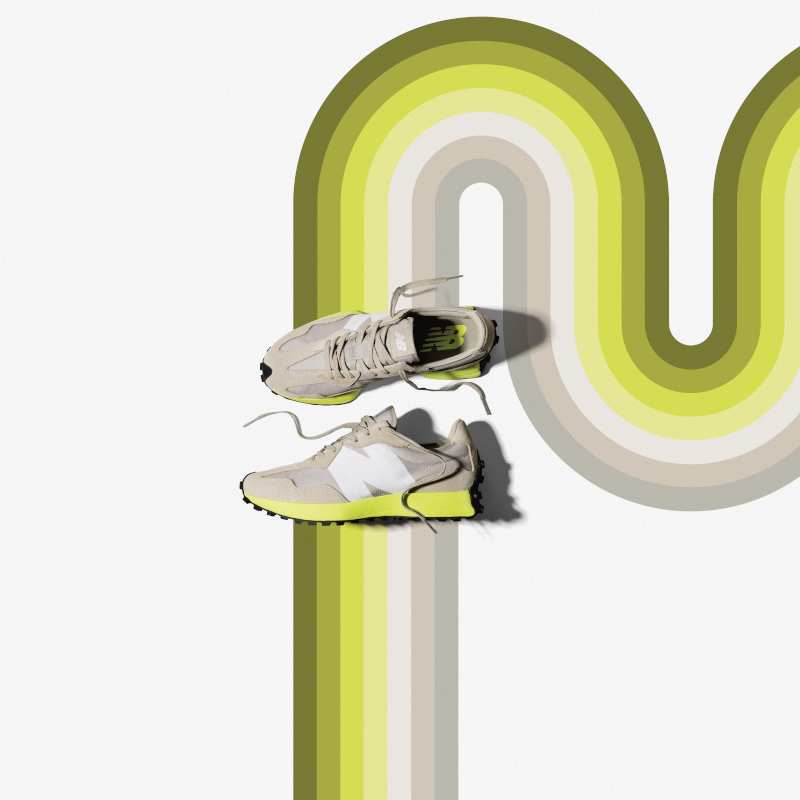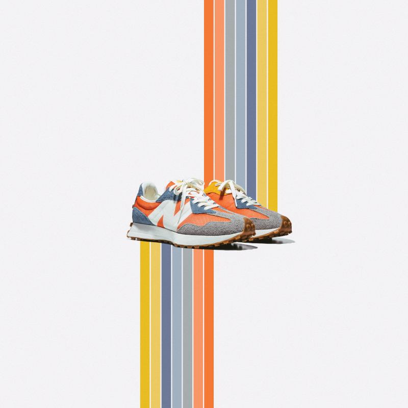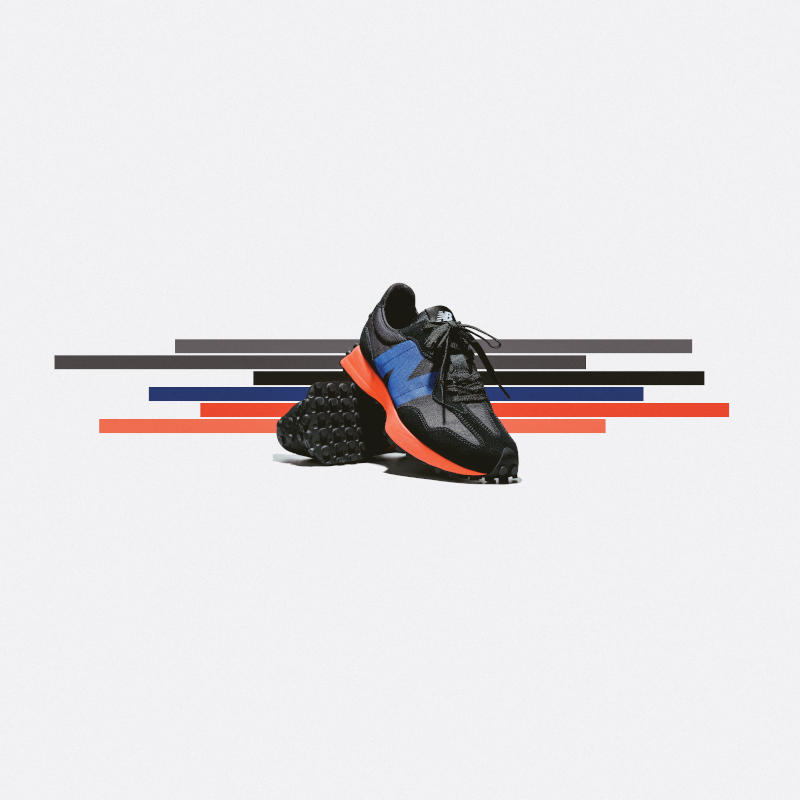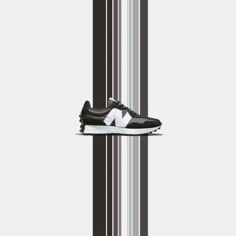 O tênis atrai a atenção principalmente pelo mix de design moderno com ares retrô. Ele une o cabedal do 320 – que foi um tênis de corrida nos anos 70 usado por atletas de elite – com o 355, tênis de trilha lançado também na mesma década. Esses elementos com um twist atual resultaram no 327.