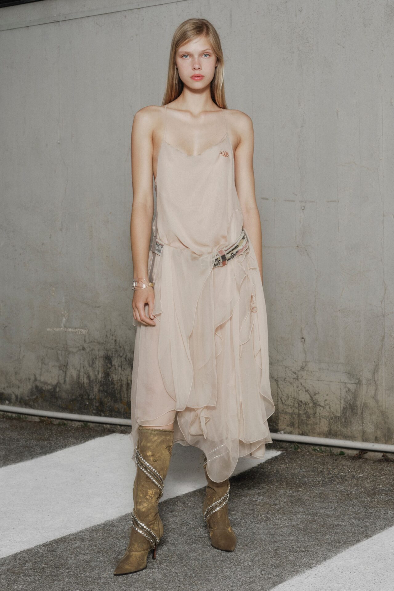 No geral, o resultado reflete uma hibridização ousada e profundamente considerada da história pioneira da DIESEL e a abordagem de alto conceito de Martens para o design de moda. Para o primeiro, trata-se de diversificar e desenvolver sua gama de produtos à medida que entramos no início da década sob um novo paradigma mundial, e para o último, trata-se de criar roupas com um pragmatismo democrático e global. O resultado esculpe firmemente o próximo capítulo na evolução da DIESEL, equilibrando o apelo popular, design inteligente e, acima de tudo, uma visão intransigente.
