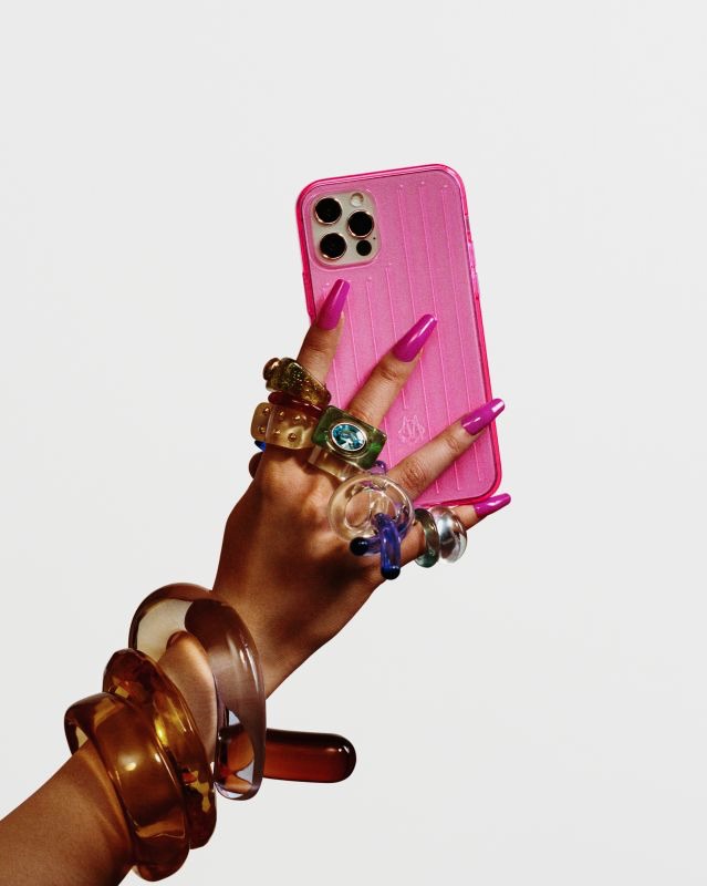 Para acompanhar o lançamento da Essential Neon, a RIMOWA também vai lançar capas de Iphone combinando em Rosa Pink e Verde Lime. Elas foram feitas para os modelos iPhone 12 Pro e Pro Max.