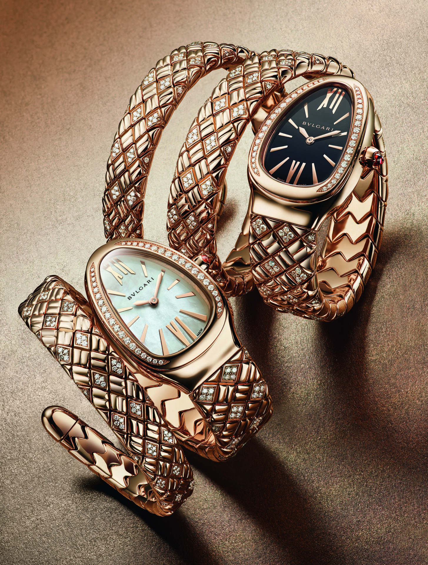 Com a apresentação do Serpenti Spiga, ressurge o ícone eterno da Serpenti, reinventado para 2021. Um símbolo da renovação perpétua, a cativante Serpenti é um dos motivos mais duradouros da Bvlgari. No mundo dos relógios da marca, os icônicos Serpenticom pulseira de voltas representam o ápice do trabalho artesanal em joalheria: peças que são joias em cada aspecto da sua criação. As três novas edições do Serpenti Spiga revelam a evolução do estilo Serpenti, que só poderia ser originário da Joalheria Romana do Tempo. Confeccionados nos magníficos ouro e diamantes e trazendo o sofisticado padrão matelassê, eles representam a capacidade única da Bvlgari de redefinir as fronteiras da criatividade, do refinamento e do savoir-faire.