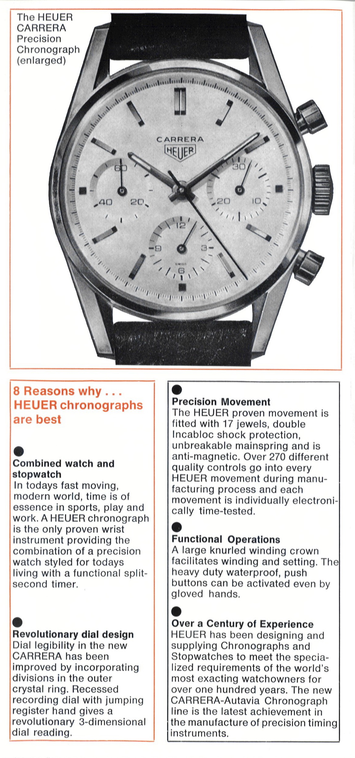 Esse relógio inovador e os modelos Carrera mais poderosos da Porsche uniram a Porsche e a Heuer — pela primeira vez — no espírito do Carrera (a palavra carrera significa “corrida” em espanhol), que representava a ambição, velocidade e excelência técnica.