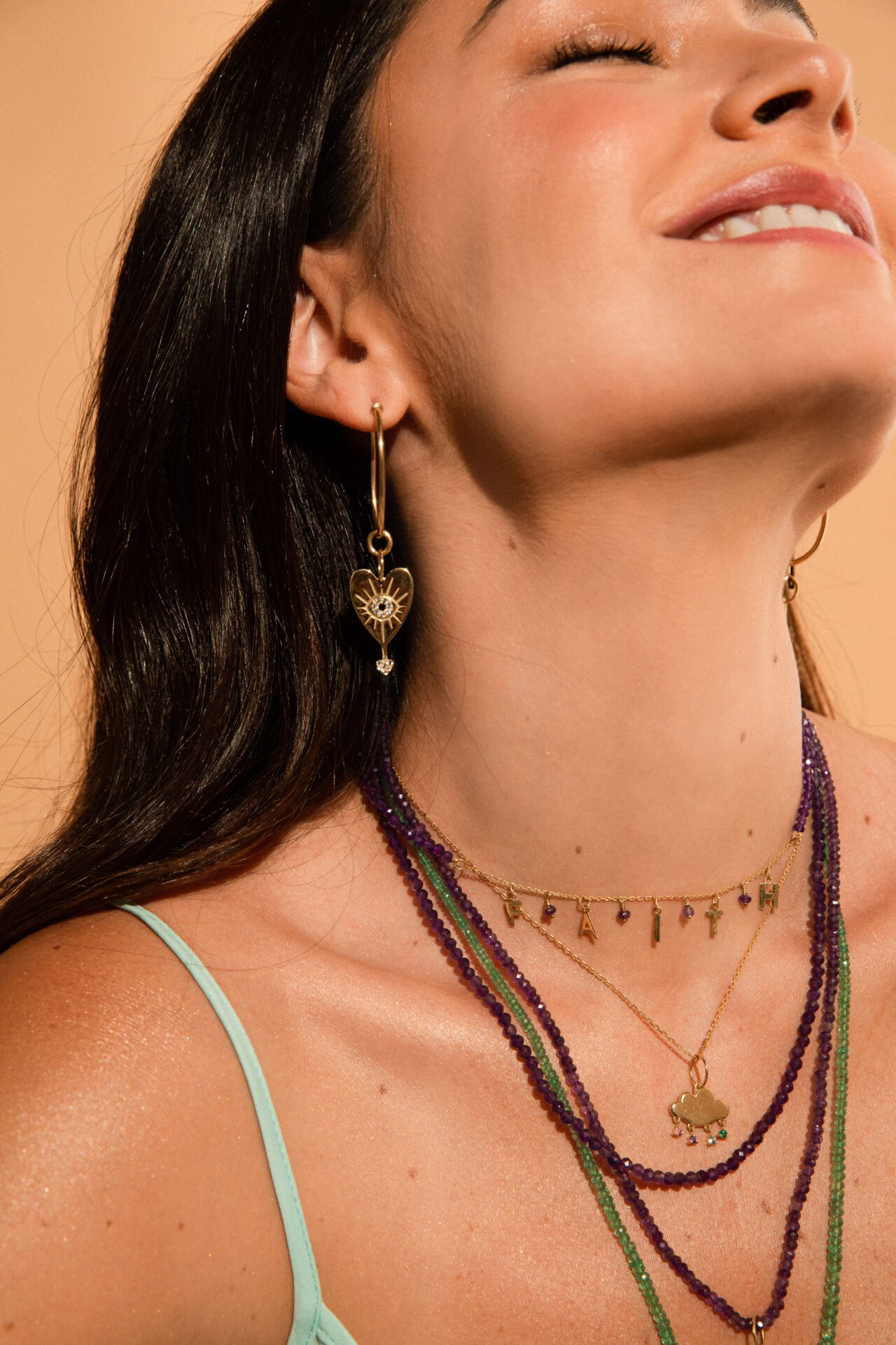 Rubis, safiras, turmalinas e amazonitas são as pedras protagonistas desta segunda collab, que têm como destaque as argolas com pingentes e rivieras. Também são apresentados amuletos de proteção – marca registrada da TAU – como olho grego, Maneki-neko e trevo da sorte em ouro amarelo, branco e rosé 18k em diversos shapes, além de charms de ursinho, cogumelo e nuvem. As medalhas apresentam a frase “I love you to the moon… and back” em homenagem ao seu filho.