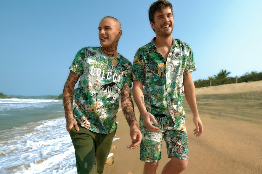 A linha masculina chega com maxi elementos com folhagens, coqueiros e artigos náuticos, além de uma estamparia divertida. De acordo com Jeziel Moraes, coordenador de estilo, os homens também apreciam estampas e cores, principalmente no verão. “Trouxemos além dos tradicionais cáqui, branco, areia e preto, tons fortes como vermelho, laranja, azul e verde, perfeitos para o verão brasileiro”, comenta.