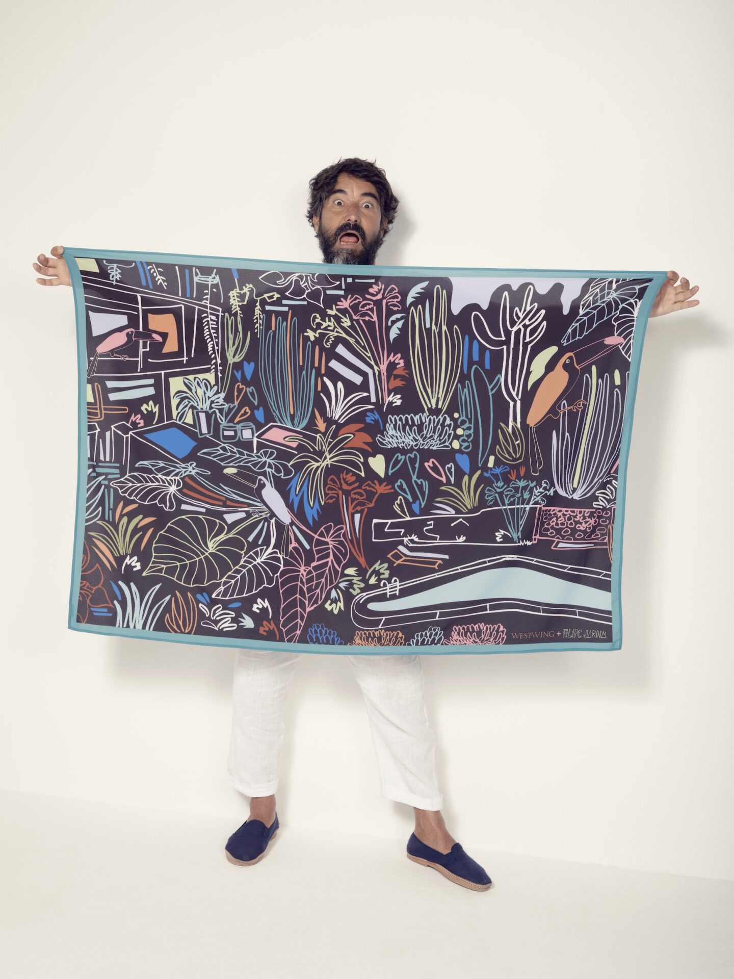 Com grande relevância internacional, Filipe Jardim já colaborou com grifes como Hermès, Tiffany & Co e Louis Vuitton, estampando sua arte observacional de inspiração modernista em itens de moda ao redor do mundo. Pela primeira vez no mercado brasileiro, sua estética, inspirada na fauna e na flora do país, ganhou vida em itens decorativos em parceria com a Westwing. A coleção conta com peças versáteis que atendem desde salas de estar a escritórios e áreas externas. Para decoração, foram desenvolvidos azulejos decorativos e uma serigrafia assinada pelo artista em edição exclusiva e limitada – apenas 150 unidades foram produzidas. Capas de almofada, futons e, no escritório, canecas e sketchbooks são algumas das peças que podem ajudar a compor o ambiente. A linha também conta com itens fashion traduzidos em dois modelos de bags e dois lenços, uma homenagem ao universo da moda.�