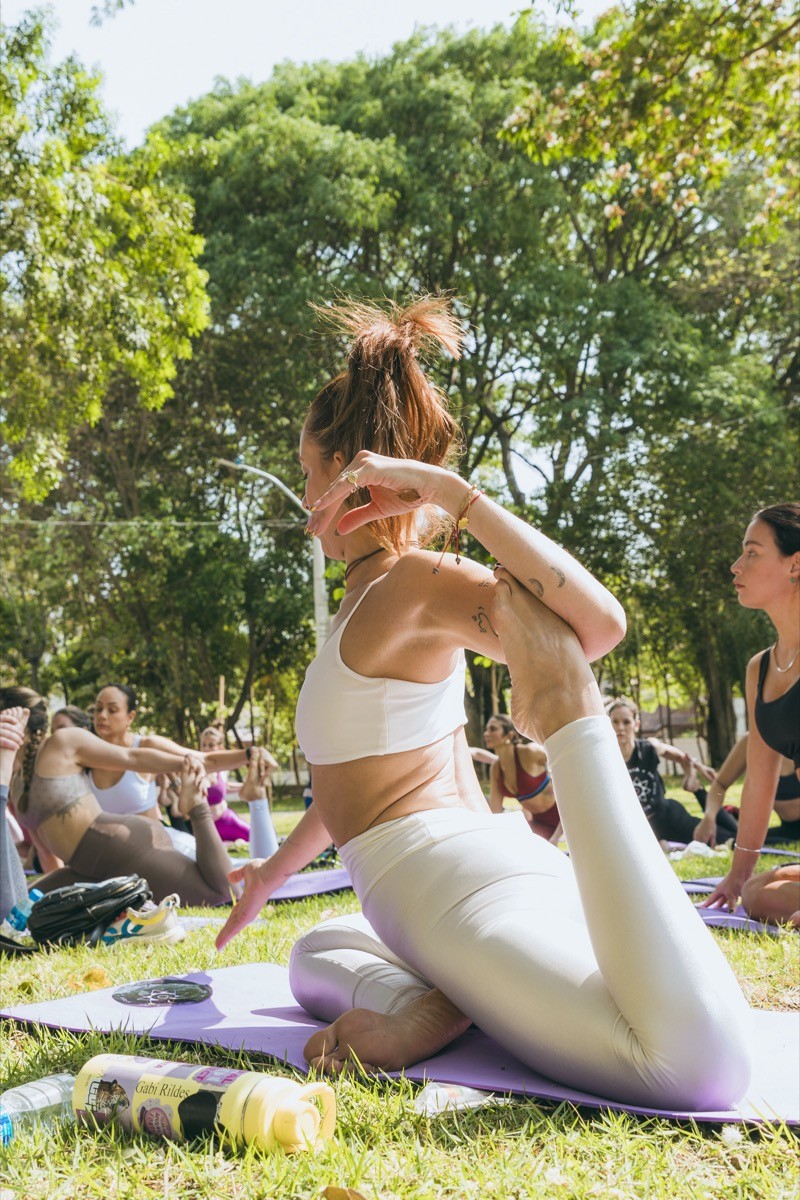 Tivemos uma prática profunda em contato com a natureza, conduzida por Nara Calipto, do Surya Hot Yoga, que nos conectou com as forças ingovernáveis de florescimento. David Pupo Nogueira trouxe músicas, mantras e sons sensíveis, refletindo sua rica trajetória e tornando a experiência ainda mais especial.