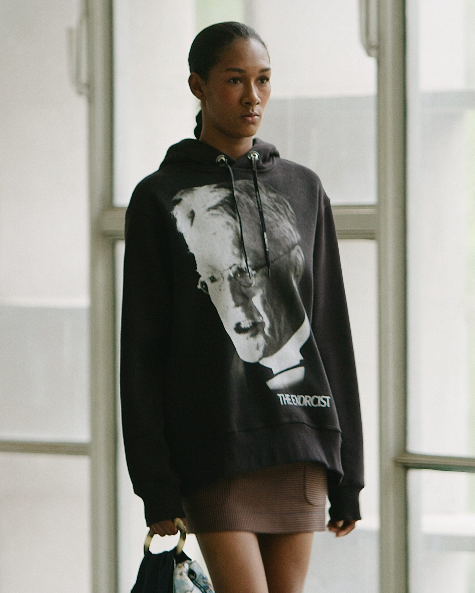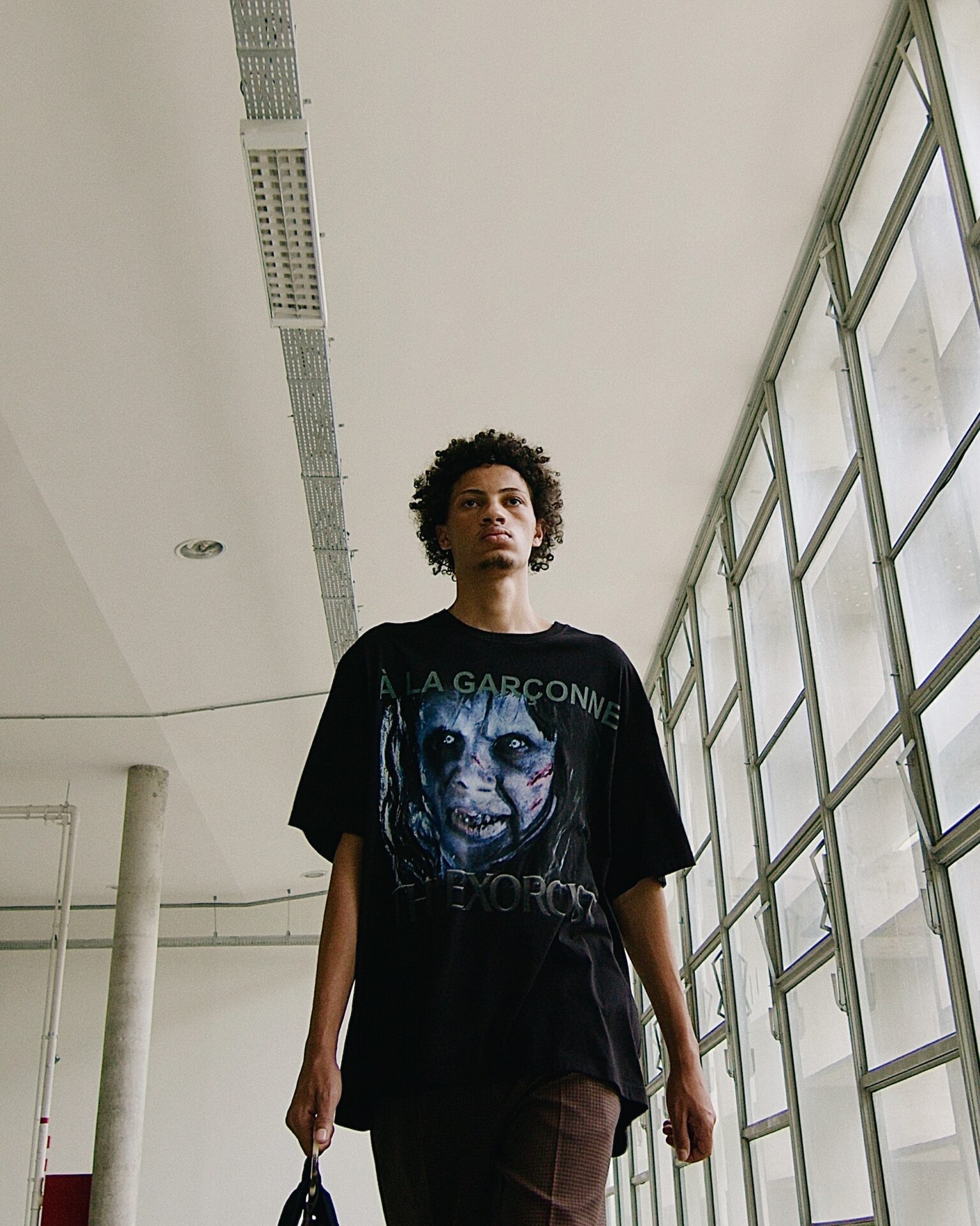 “Um pouco de inspiração nas formas dos anos 1970 e nos figurinos de filmes de terror que estamos trabalhando como estamparia.” Diz Alexandre Herchcovitch sobre a coleção 02-21 À La Garçonne. O filme The Exorcist de 1973 foi o ponto de partida para chegar a formas e matérias primas desta coleção. Para a coleção também desenvolvemos peças dos filmes Gremlins, It, A Nightmare on Elm Street, Friday the 13th. Além disso o trabalho de upcycling e ressignificação intensifica-se ao usarmos peças workwear dos anos de 1920 francesas para compor roupas feitas agora. Sapatos em parceria com a Eurico que é conhecida por fazer até o tamanho 48, ajudam a contar o que pensamos sobre moda para todos sem excluir. Tênis em parceria com a Olympikus, toda a estamparia feita pela Epson com o inovador método de não usar água no processo, e isso tem tudo a ver com o que À La Garçonne acredita e faz.