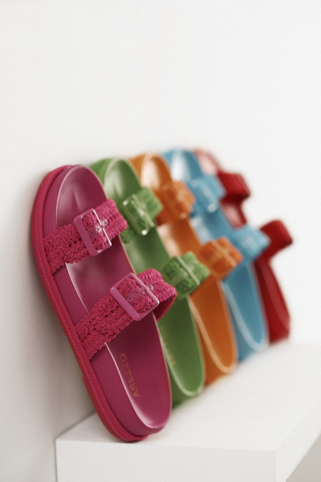 A Arezzo apresenta a nova coleção de sapatos e bolsas “Luci”, inspirada nos tons vibrantes de NEON, onipresentes na coleção de alto verão 22 da marca. O crochê, um minucioso trabalho de tear querido pelas brasileiras no verão, se dá presente em mules, sandálias papete, salto com plataforma e scarpins em cartela de cores vivas, seguindo a tendência monocromática do alto verão 22 da Arezzo e sendo mais uma vez referência na área que atua.