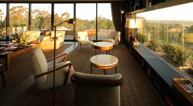 Localizada no ponto mais alto do empreendimento na região de La Barra, e inserida na bela paisagem local, que reserva uma das vistas mais privilegiadas da região, as áreas de lazer do Locanda reúnem solarium, lounge, bar e piscina privativa, pensados de maneira integrada para a comodidade do hóspede, que pode usufruir de diferentes serviços em um mesmo local. O projeto de ampliação buscou integrar a Locanda Fasano ao restante do empreendimento, tanto pela escolha dos materiais que compõem sua arquitetura – em sua maioria madeira e ferro – como também respeitando e integrando elementos da natureza, como pedras e vegetação (Nas fotos abaixo, imagens dos interiores do projeto).