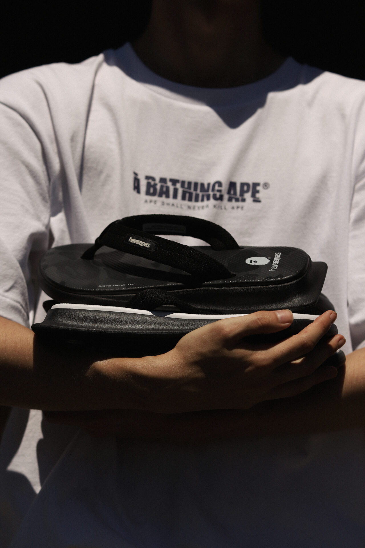 “Com a padronagem camuflada icônica de BAPE – ABC camo – queremos compartilhar a cultura streetwear do Japão com o mundo. Com base em nossa visão ‘APES TOGETHER STRONG’, estamos empolgados em unir forças com Havaianas e combinar nossa camuflagem ABC com os icônicos chinelos em uma collab perfeita”, comenta o time da A BATHING APE®.