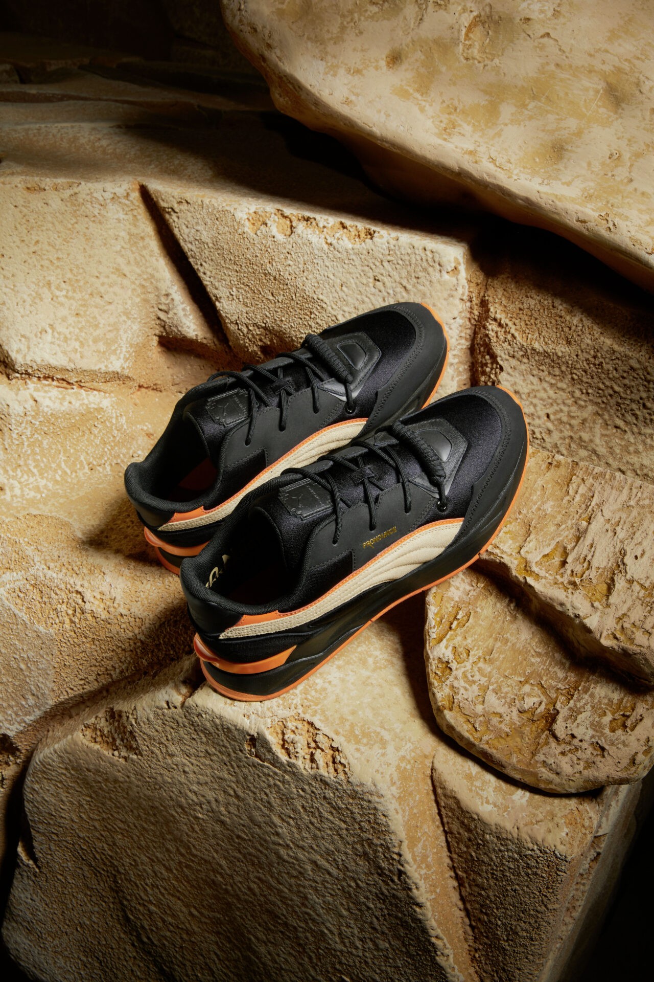 Os tênis da coleção utilizam uma mistura de materiais e texturas numa paleta de cores neutras. Toques de laranja brilhante e detalhes de corda adicionam um toque ousado. A seleção inclui novos estilos PUMA como o Mirage Sport e o clássico Basket VTG.