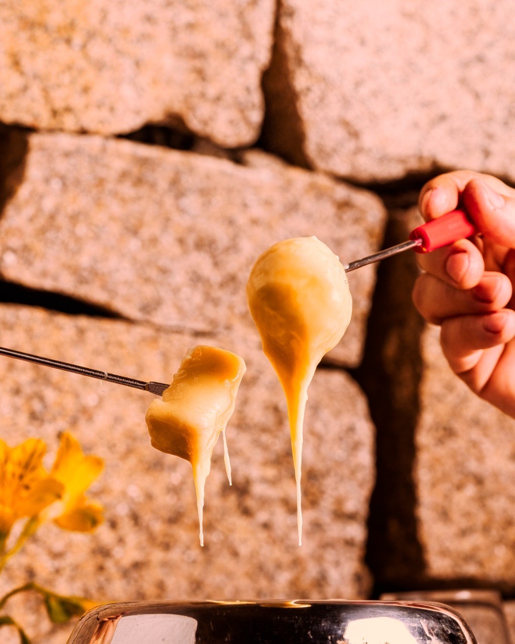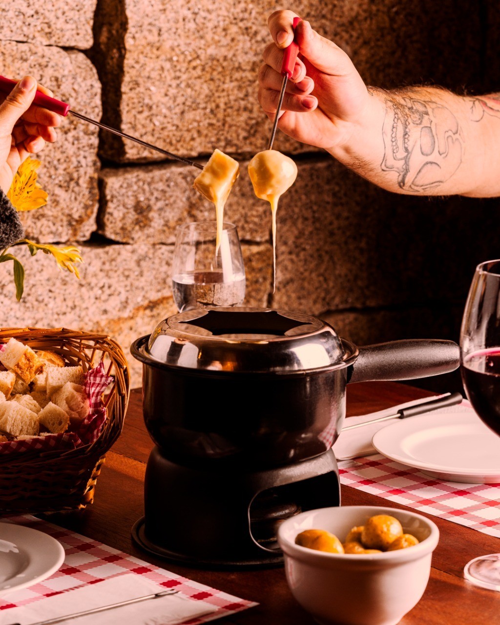 A segunda opção é o fondue, de queijo e de carne, que acompanha filé mignon, mini-batatas, brócolis, couve-flor e pão italiano; e de sobremesa fondue de chocolate com uva, morango, abacaxi, banana e damasco.