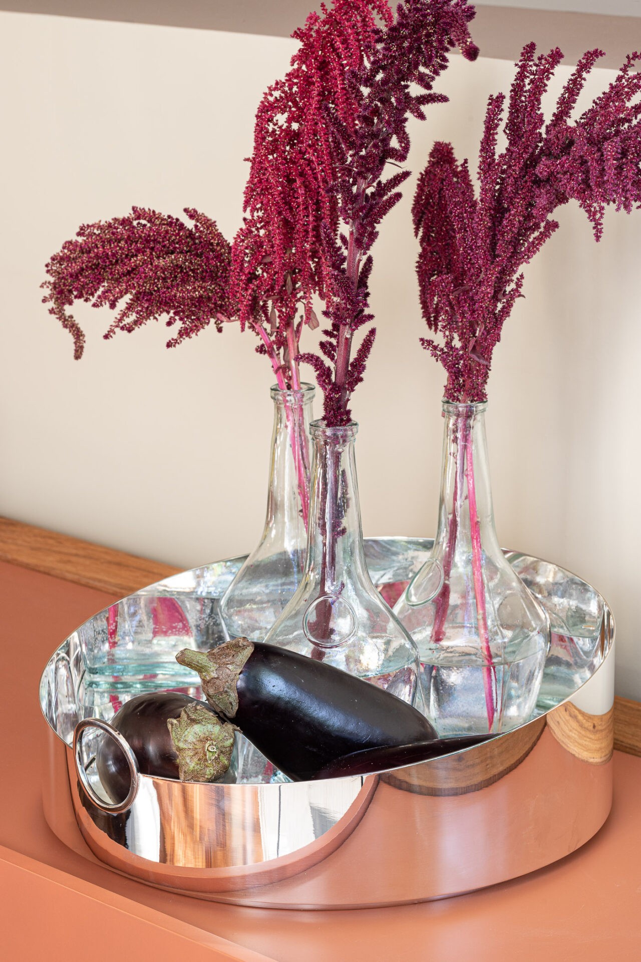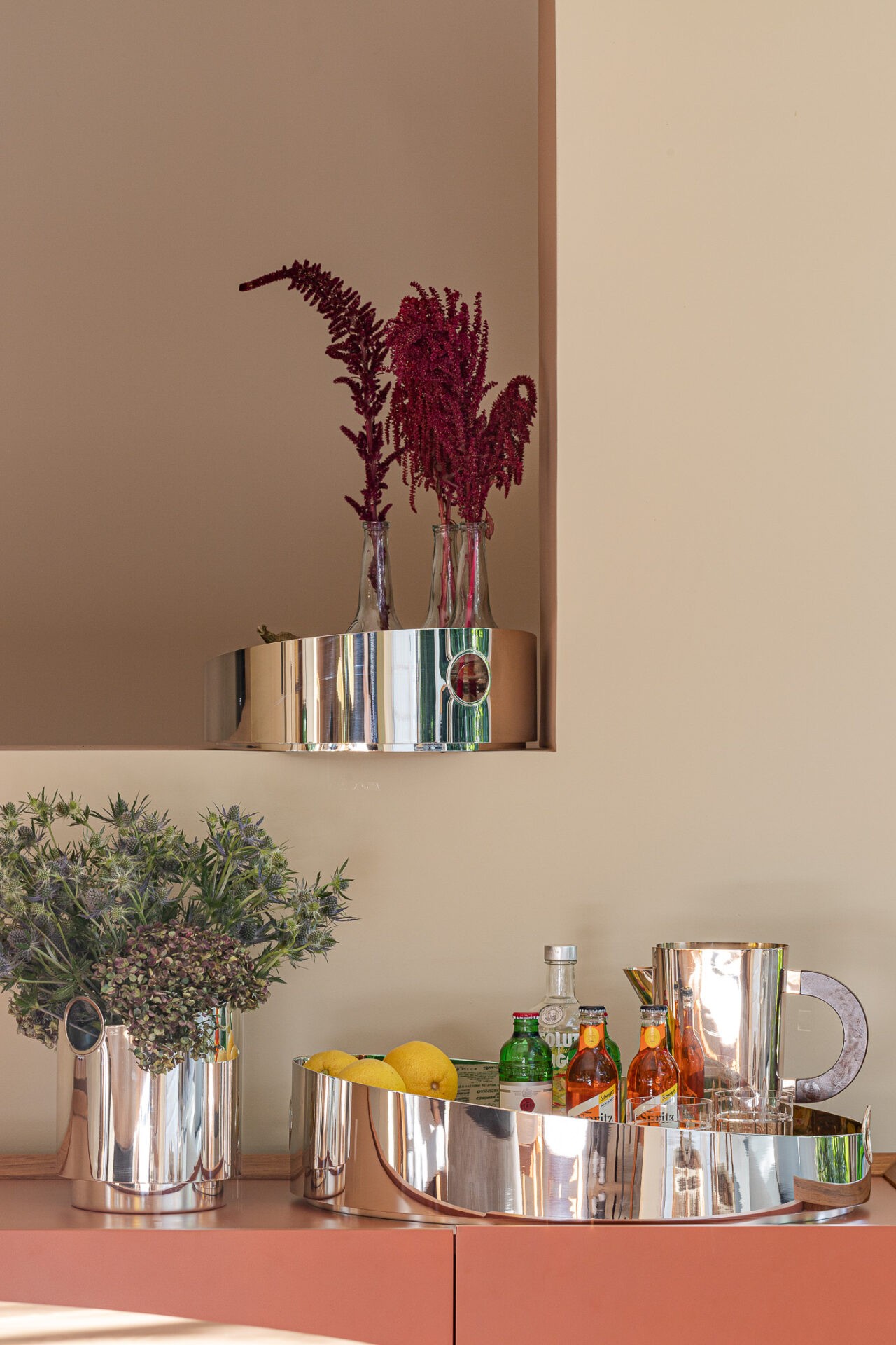 Chamada Ring, a linha é composta por balde e bandejas nos formatos oval e redondo. As peças são resultado de um gesto simples, um único corte em diagonal em um monobloco, criando um efeito óptico com anéis em movimento. Leo Romano também assina a coleção Bilbao que reúne vasos e centros de mesa. O designer se inspirou em fragmentos das obras desconstrutivistas de Frank Gehry e imprimiu nas peças as curvas e linhas soltas que remetem a um skyline de uma cidade.