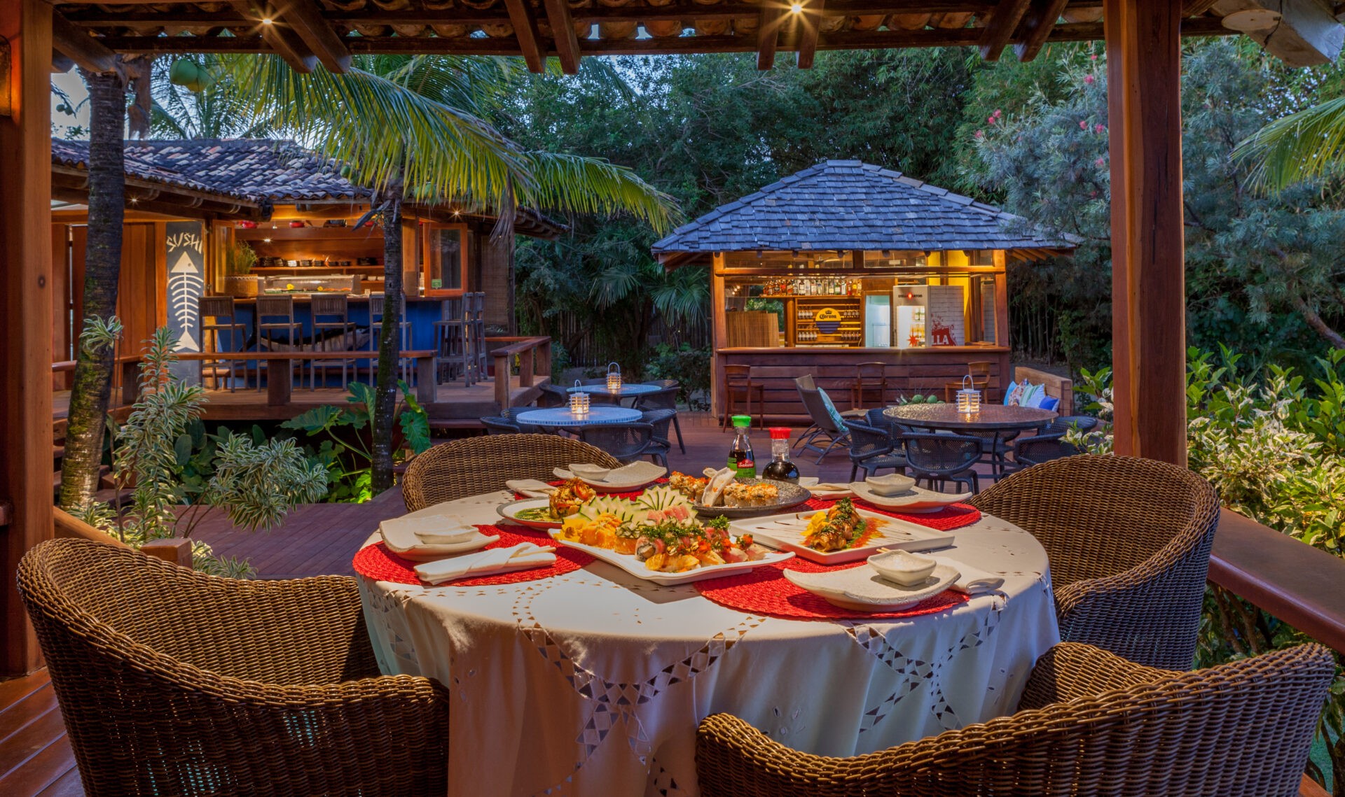 O hotel também possui três restaurantes: Bar da Costa com drinks à beira da piscina, Aldeia de São João com pratos mais elaborados da gastronomia local e um Sushi Bar. O menu oferece opções para todos os gostos, desde cozinha internacional até o melhor da culinária contemporânea da Bahia. Vale jantar sob a luz das estrelas e o barulho do mar como trilha de fundo. Em dezembro, inovaram criando o restaurante Playa, o primeiro restaurante noturno na praia de lá com um cardápio enxuto, a fim de oferecer o que há disponível de melhor, com apenas três opções de peixes e frutos do mar e três opções de carnes além de um varal para acompanhamentos defumados saindo da parrilla. O restaurante é sazonal e funcionará no verão, permanecendo aberto até março de 2021.